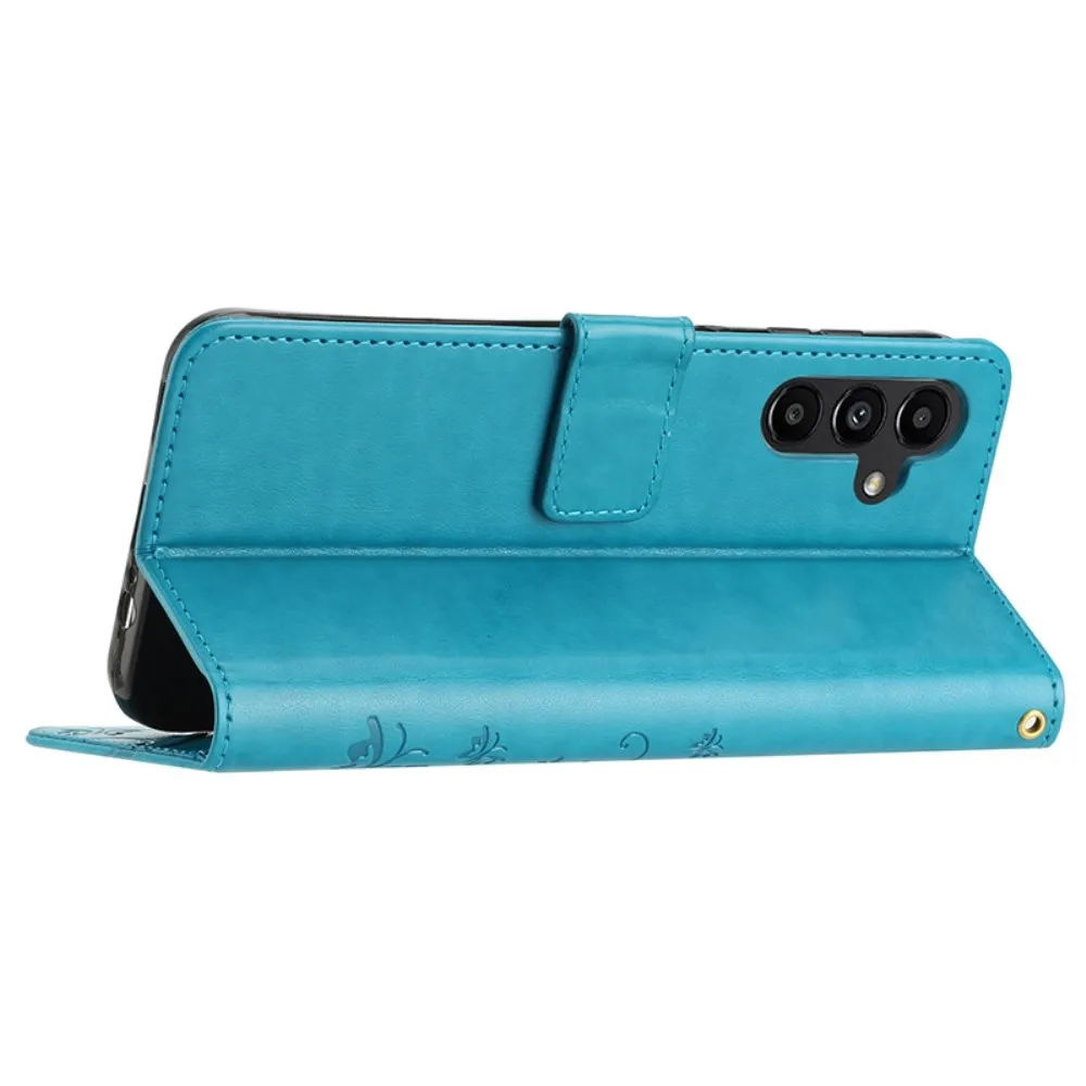 Kék pénztárca tok Virágok a Samsung Galaxy A05s számára