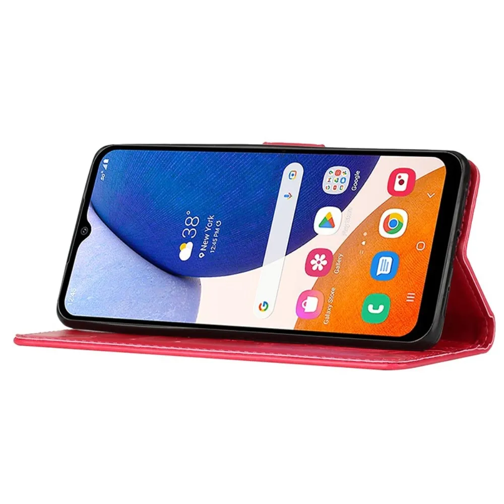 Piros pénztárca tok Virágok a Samsung Galaxy A05s számára