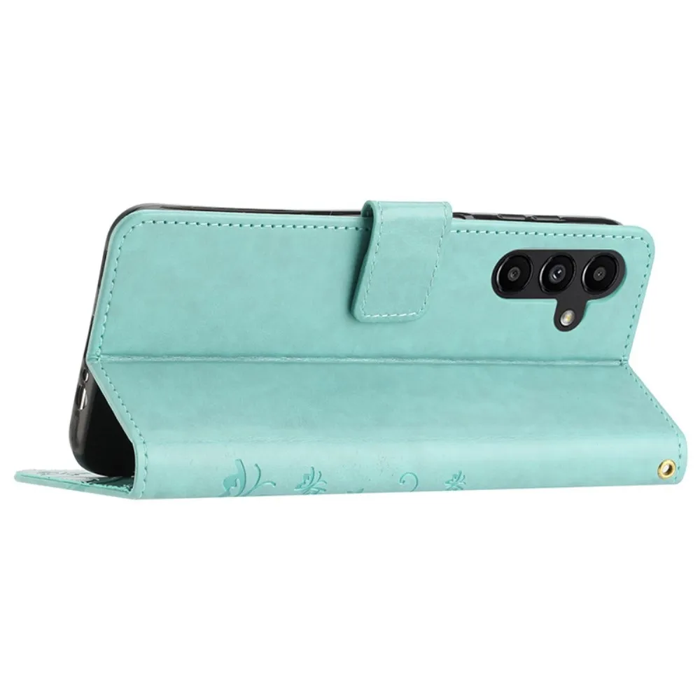 Kék-zöld pénztárca tok Virágok a Samsung Galaxy A05s számára