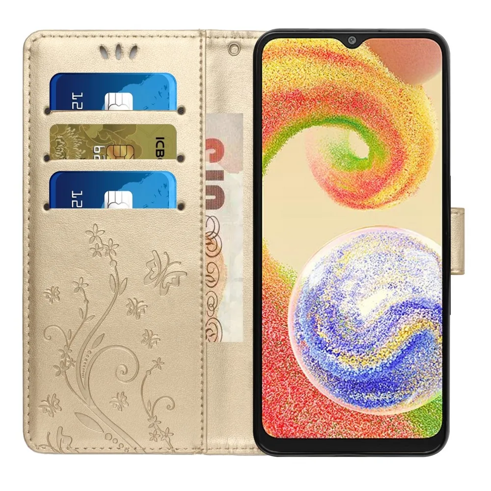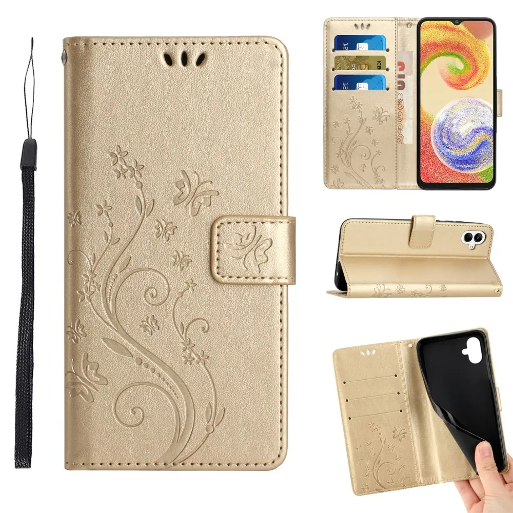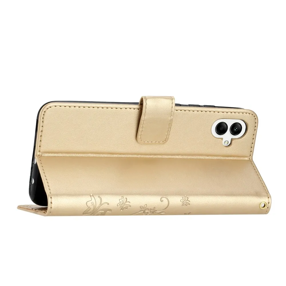 Arany pénztárca tok Virágok Samsung Galaxy A06 4G-hez