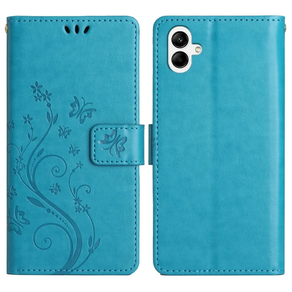 Kék pénztárca tok Virágok a Samsung Galaxy A06 4G számára