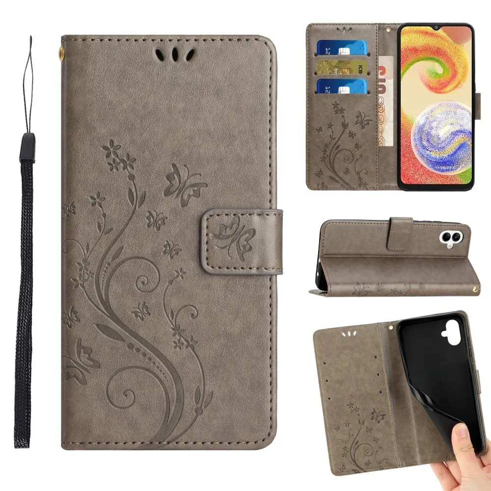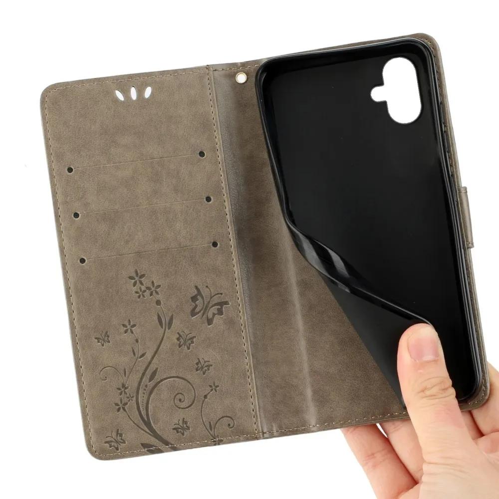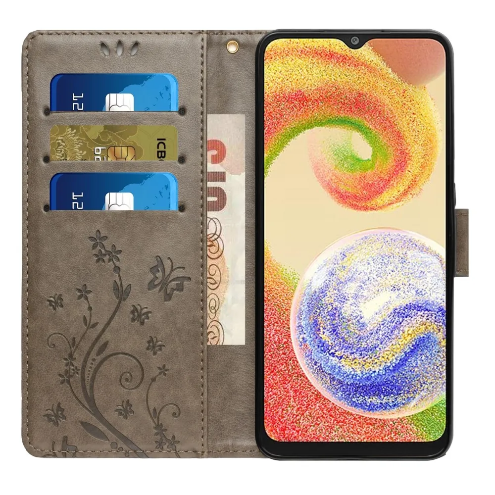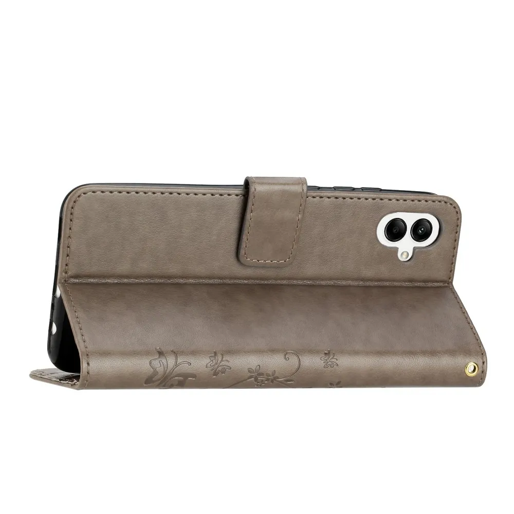 Szürke pénztárca tok Virágok a Samsung Galaxy A06 4G-hez