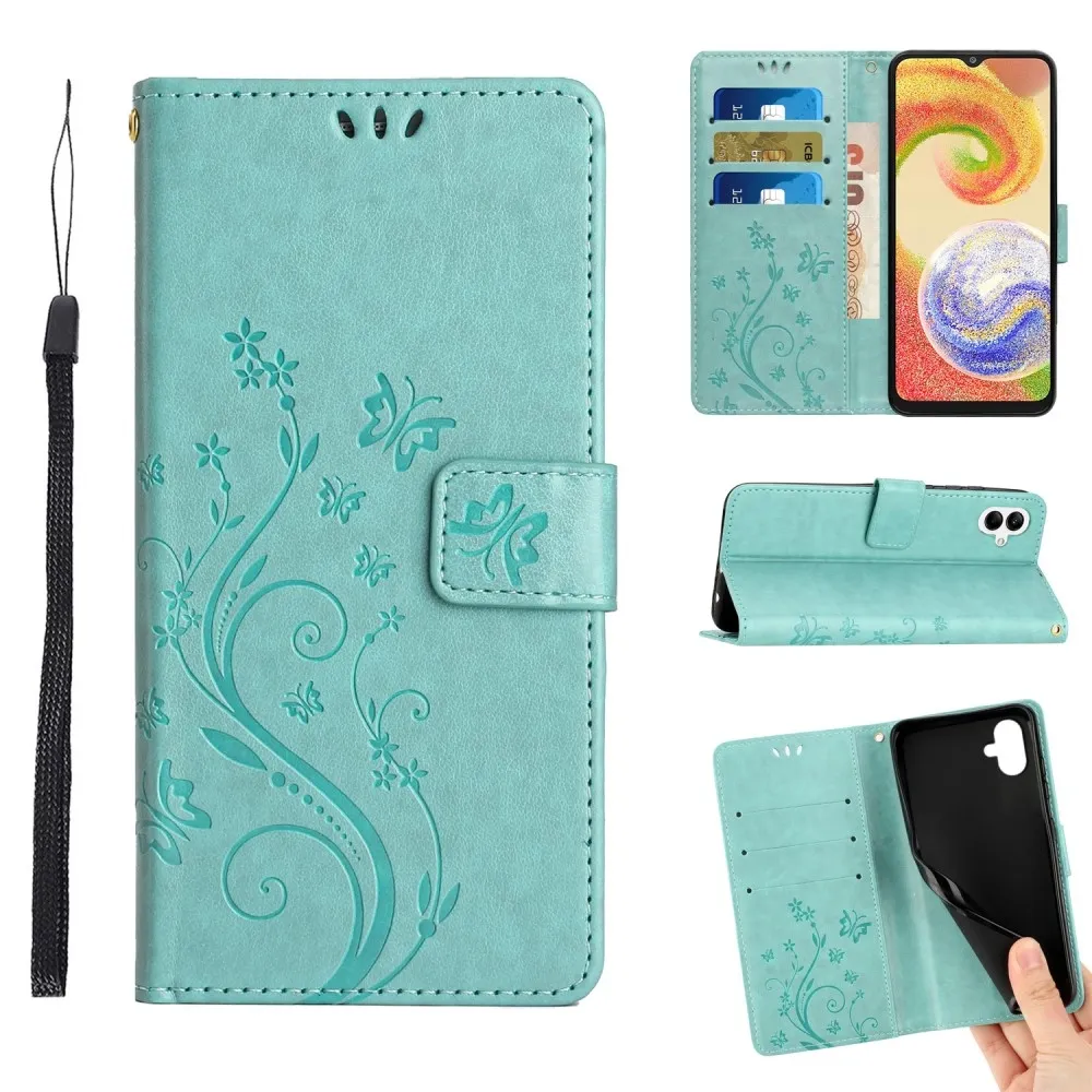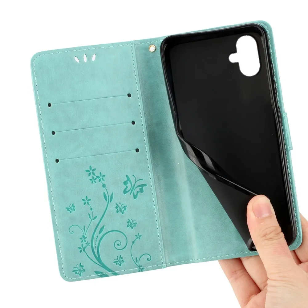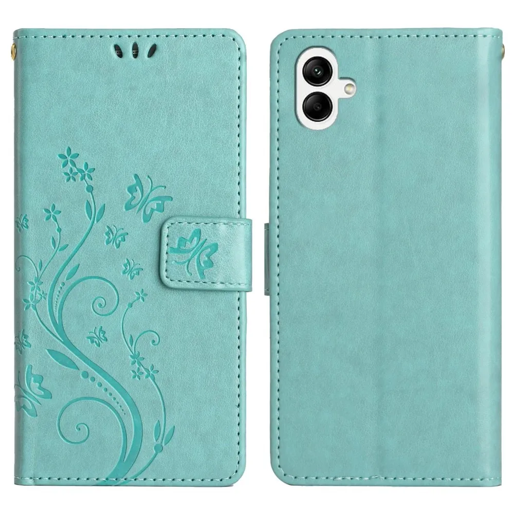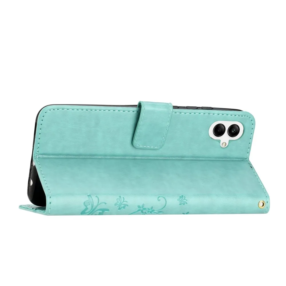 Kék-zöld pénztárca tok Virágok a Samsung Galaxy A06 4G-hez