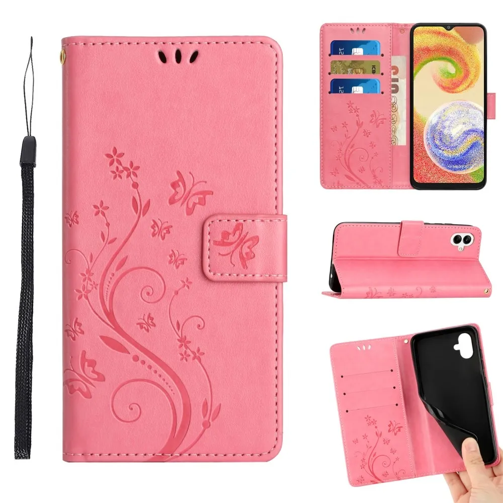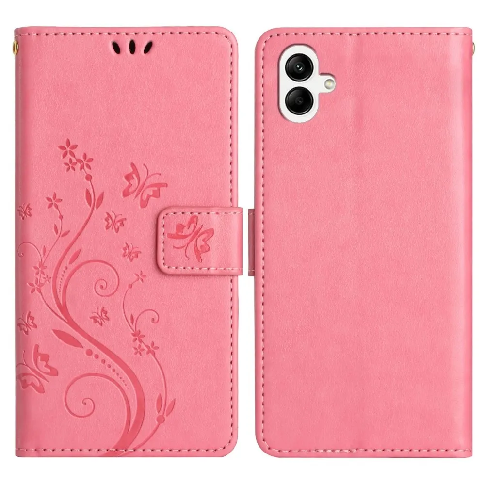 Rózsaszín pénztárca tok Virágok Samsung Galaxy A06 4G-hez