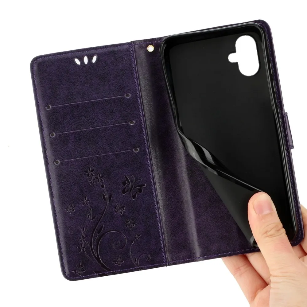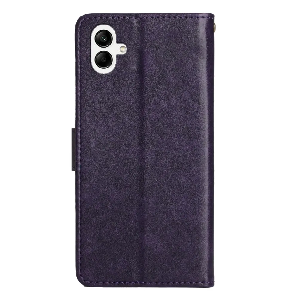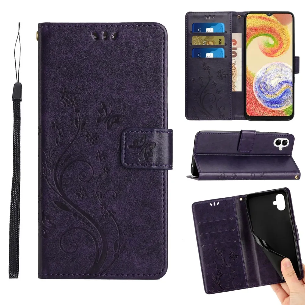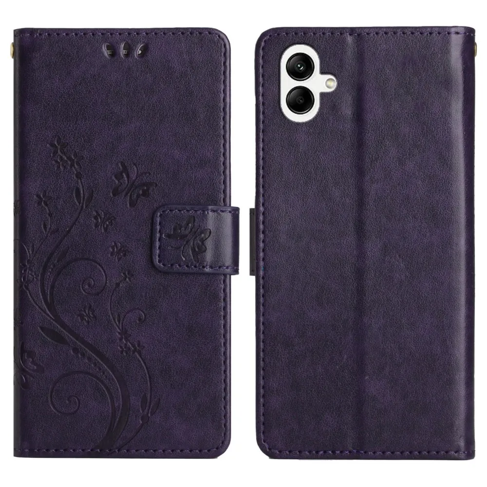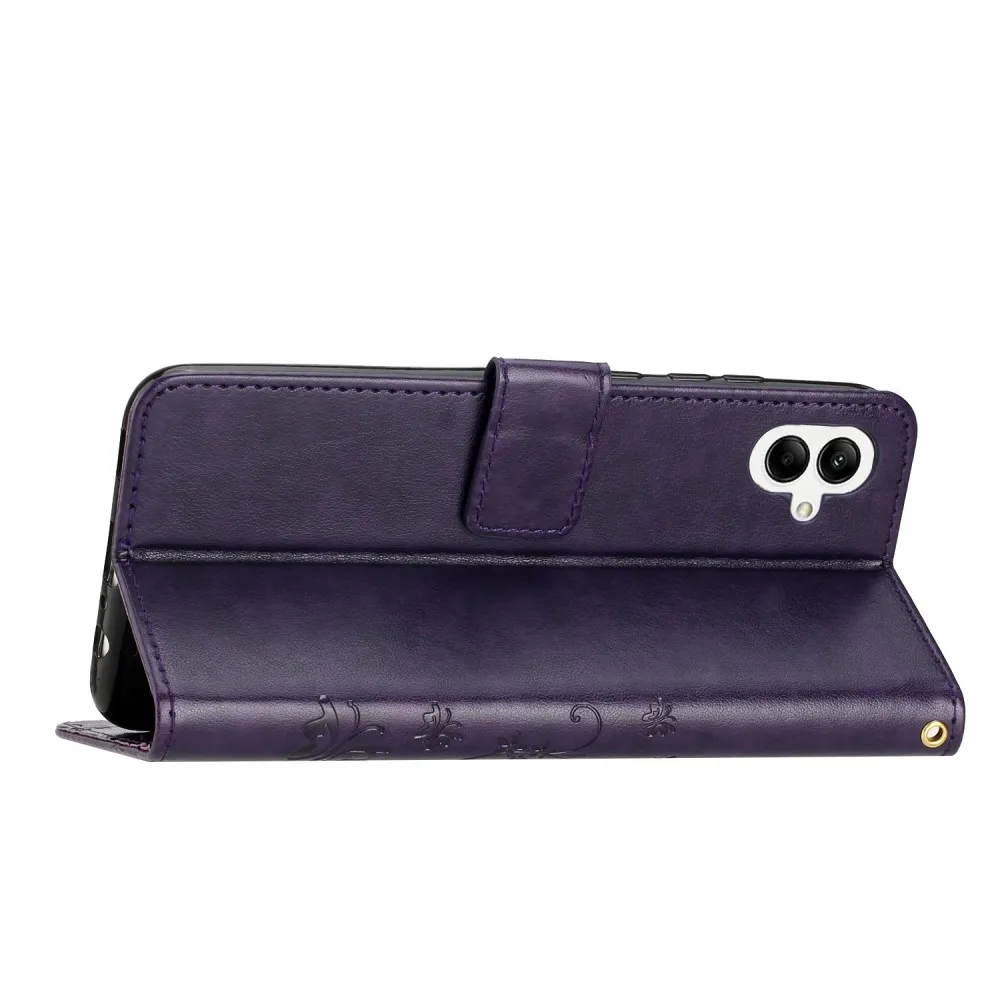 Sötét lila virágok pénztárca tok Samsung Galaxy A06 4G-hez
