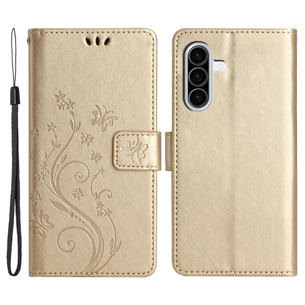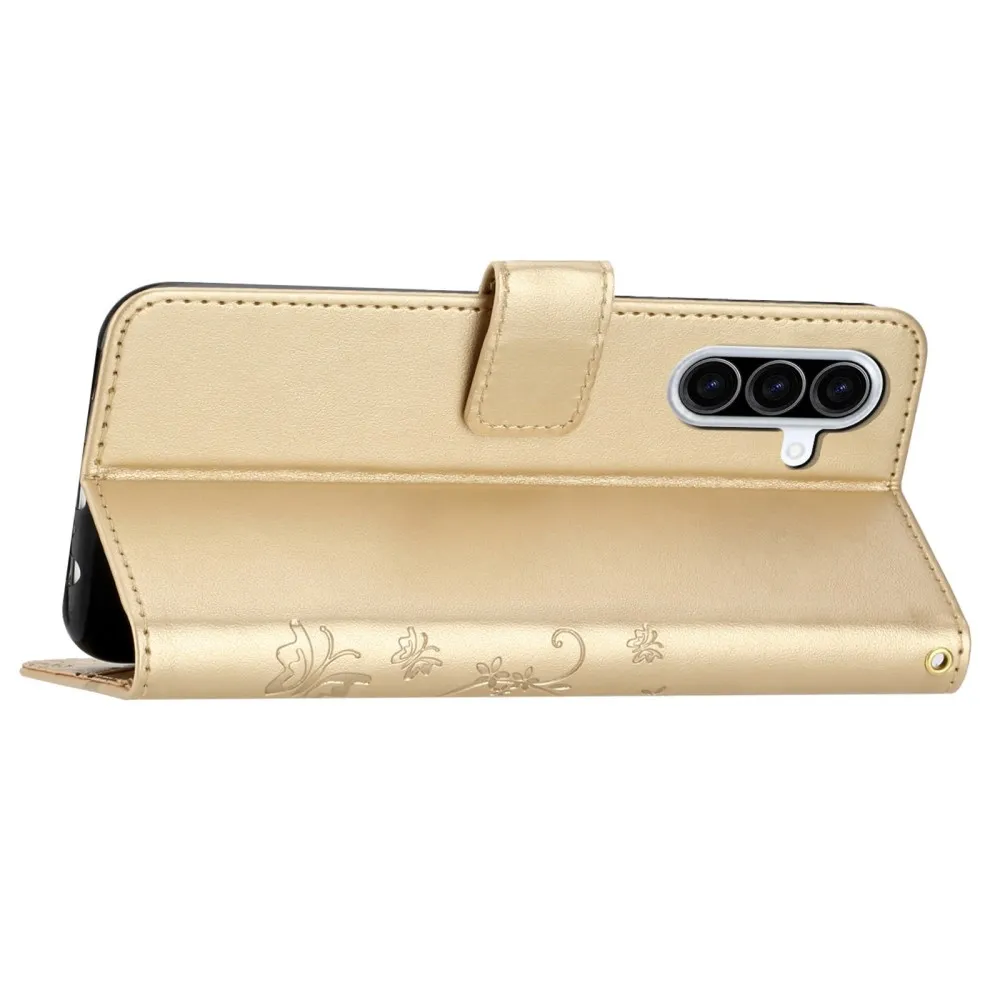 Arany pénztárca tok Virágok Samsung Galaxy A26 5G számára