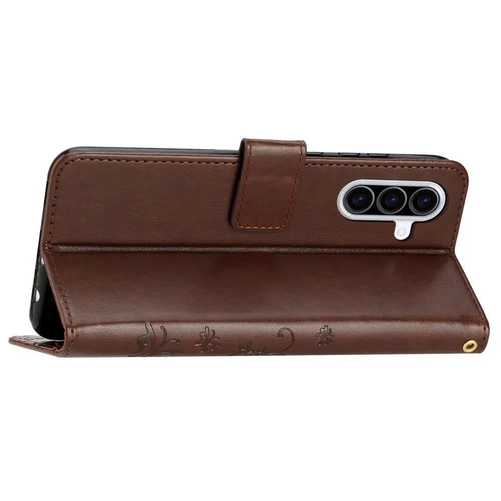 Barna pénztárca tok Virágok Samsung Galaxy A26 5G számára