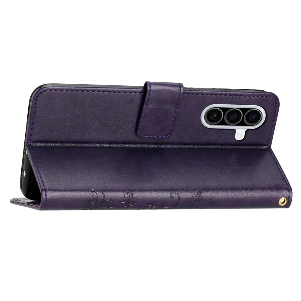 Sötét lila virágok pénztárca tok Samsung Galaxy A26 5G számára