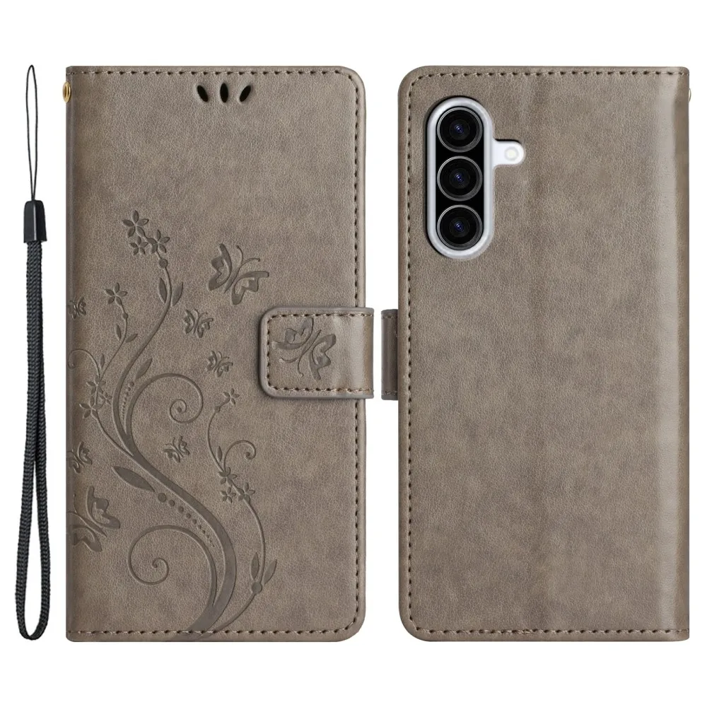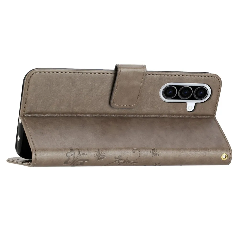 Szürke pénztárca tok Virágok Samsung Galaxy A26 5G számára