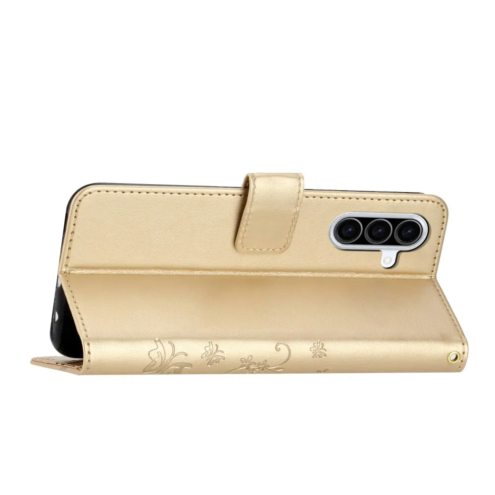 Arany pénztárca tok Virágok Samsung Galaxy A36 5G számára