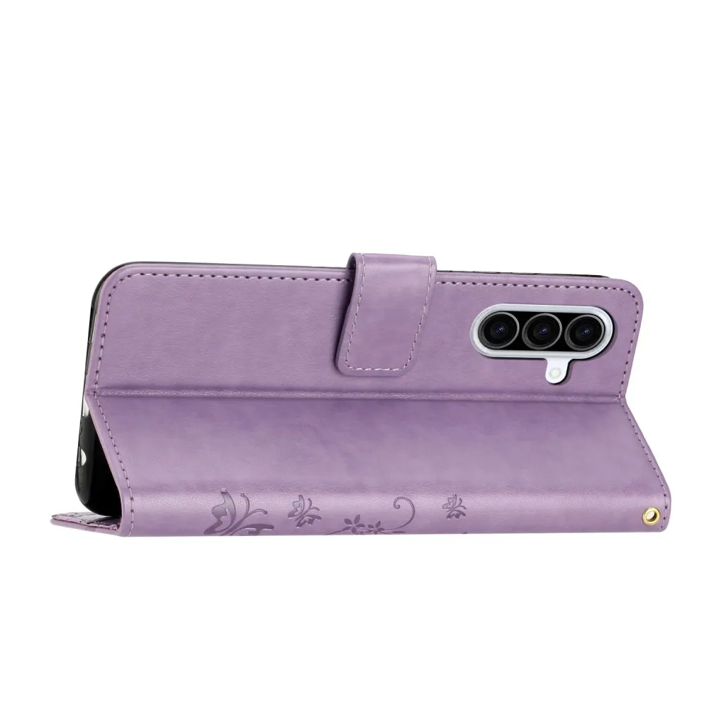 Világos lila pénztárca tok Virágok Samsung Galaxy A36 5G számára