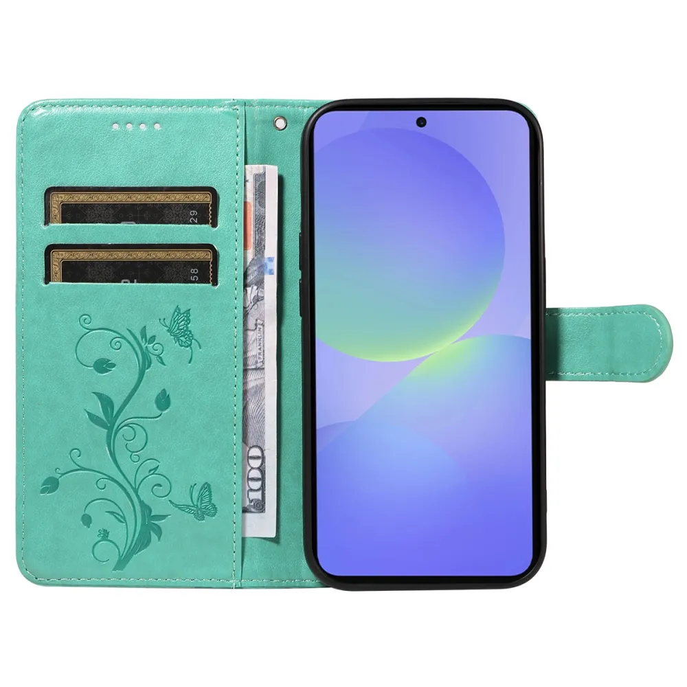 Kék-zöld pénztárca tok Virágok a Samsung Galaxy A37 5G számára