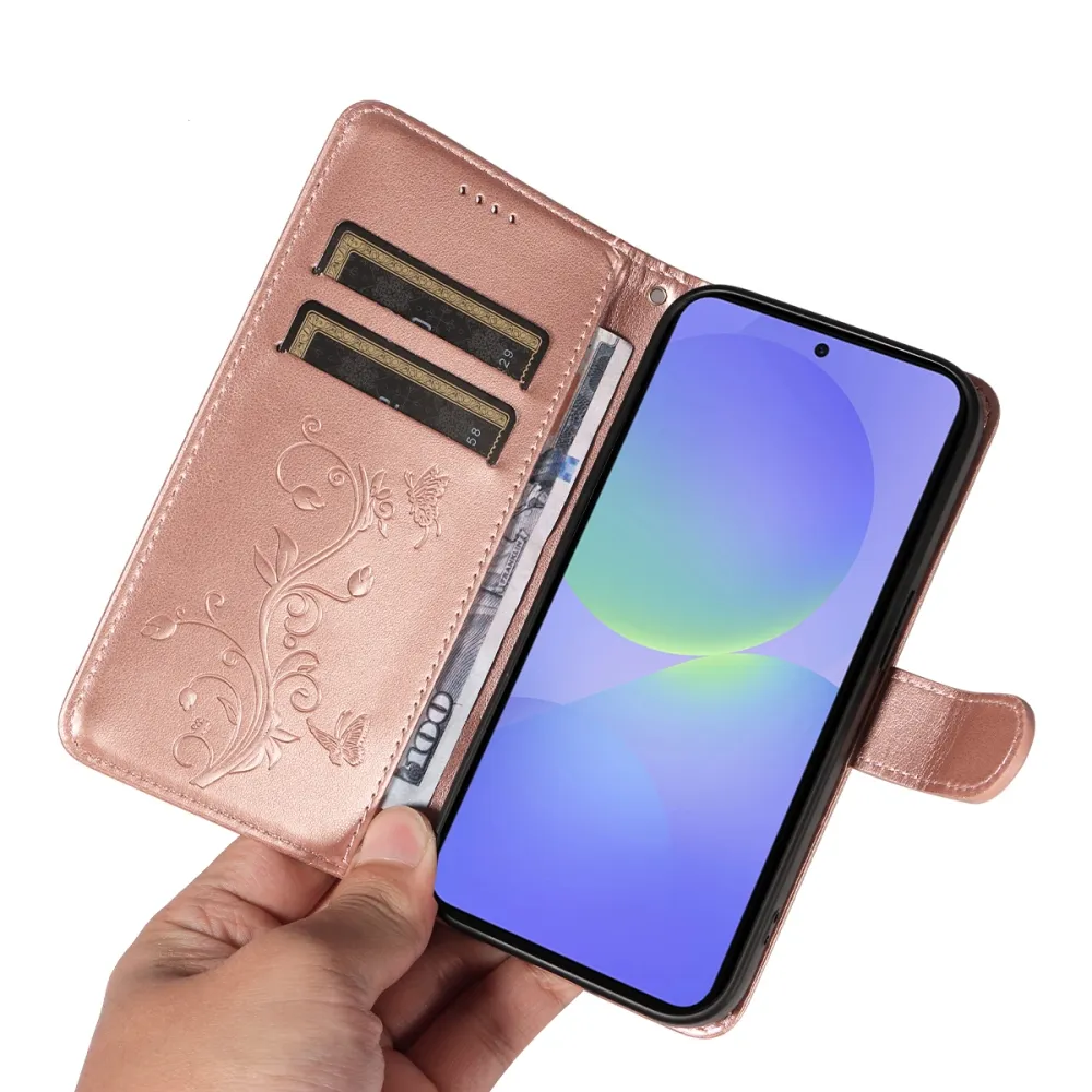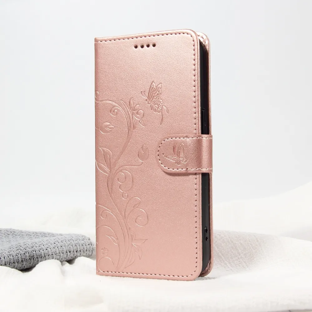 Rózsaszín és arany Virágok pénztárca tok Samsung Galaxy A37 5G-hez