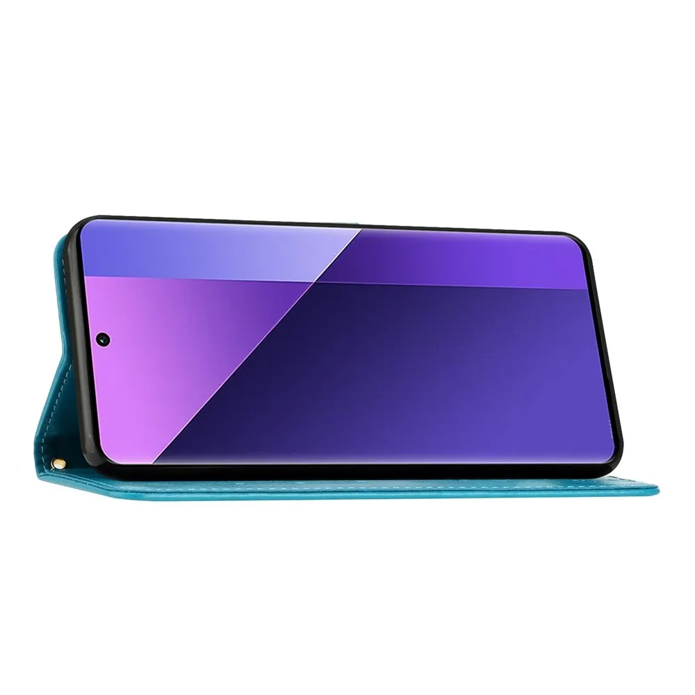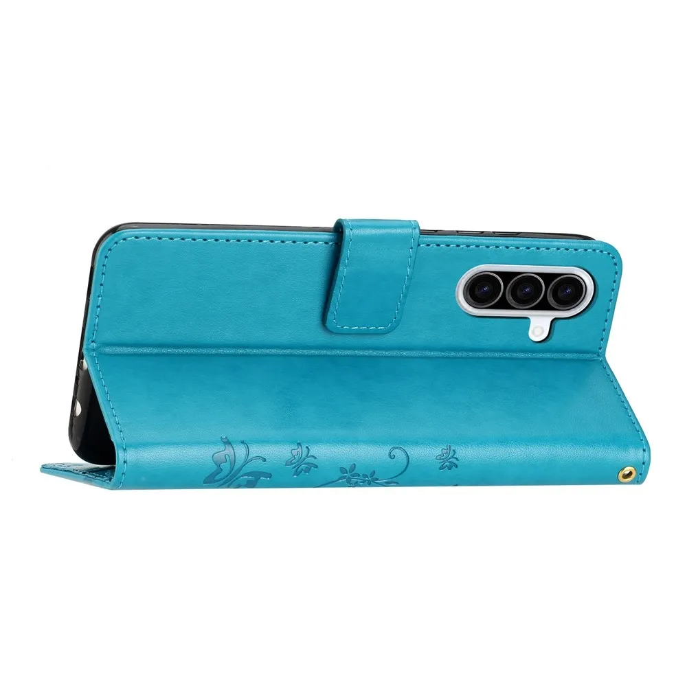 Kék pénztárca tok Virágok Samsung Galaxy A57 5G számára