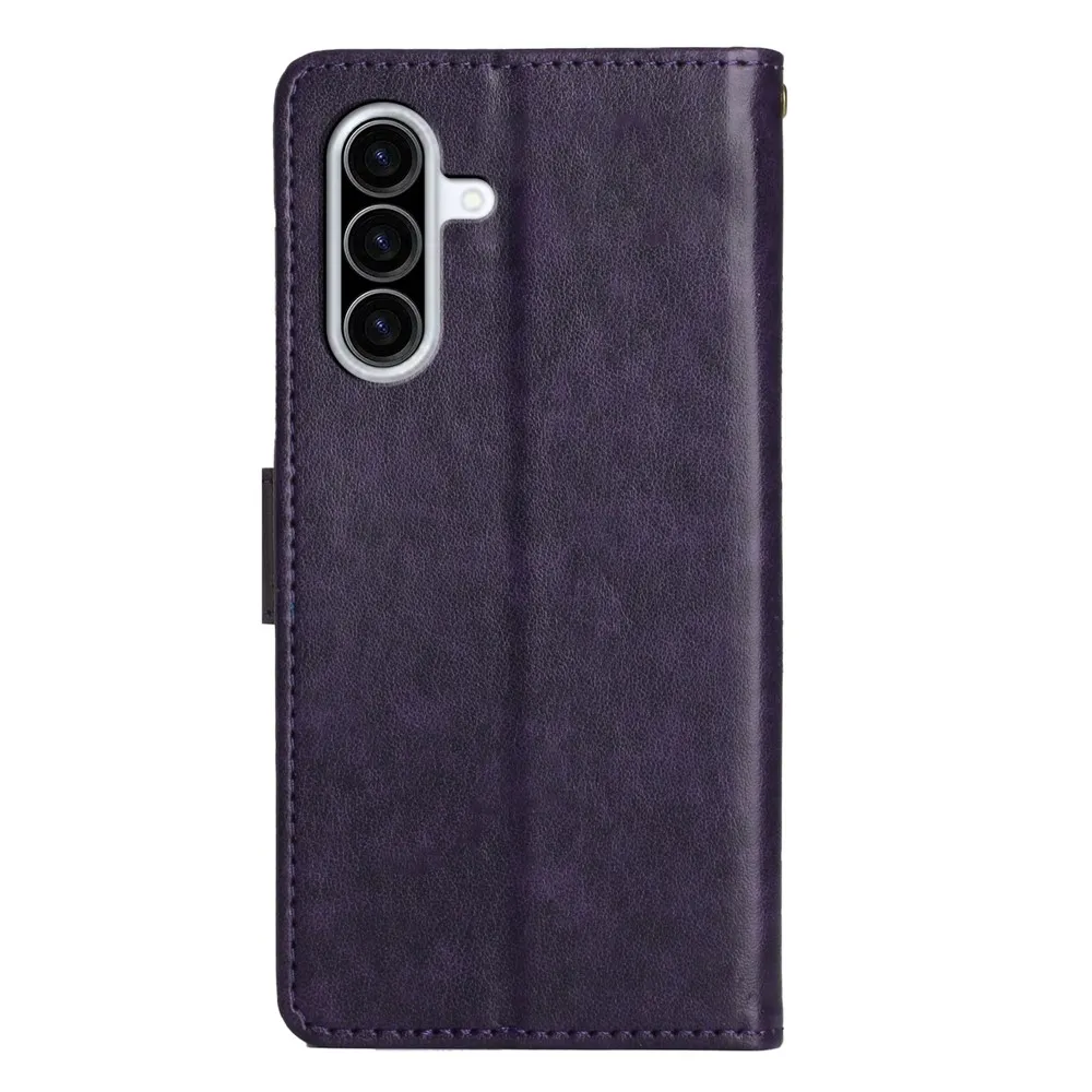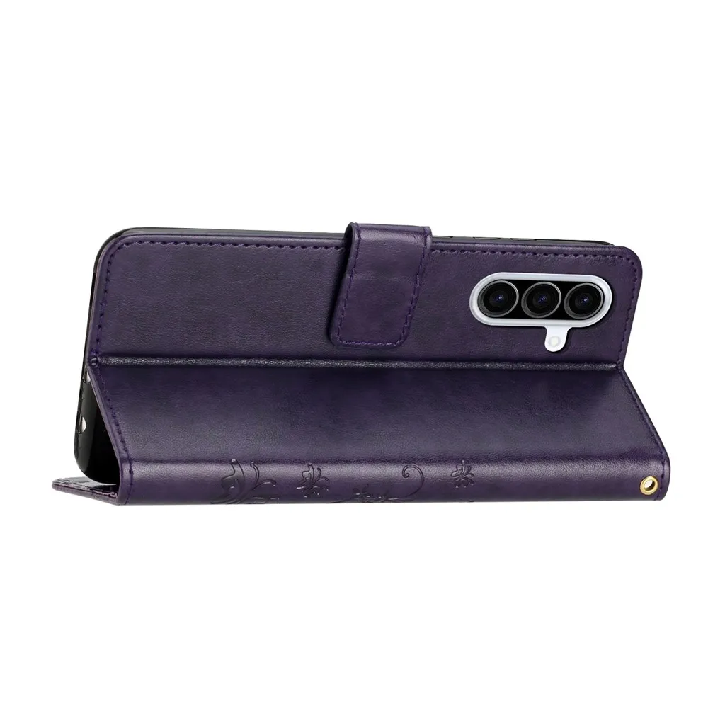 Sötét lila virágok pénztárca tok Samsung Galaxy A57 5G-hez