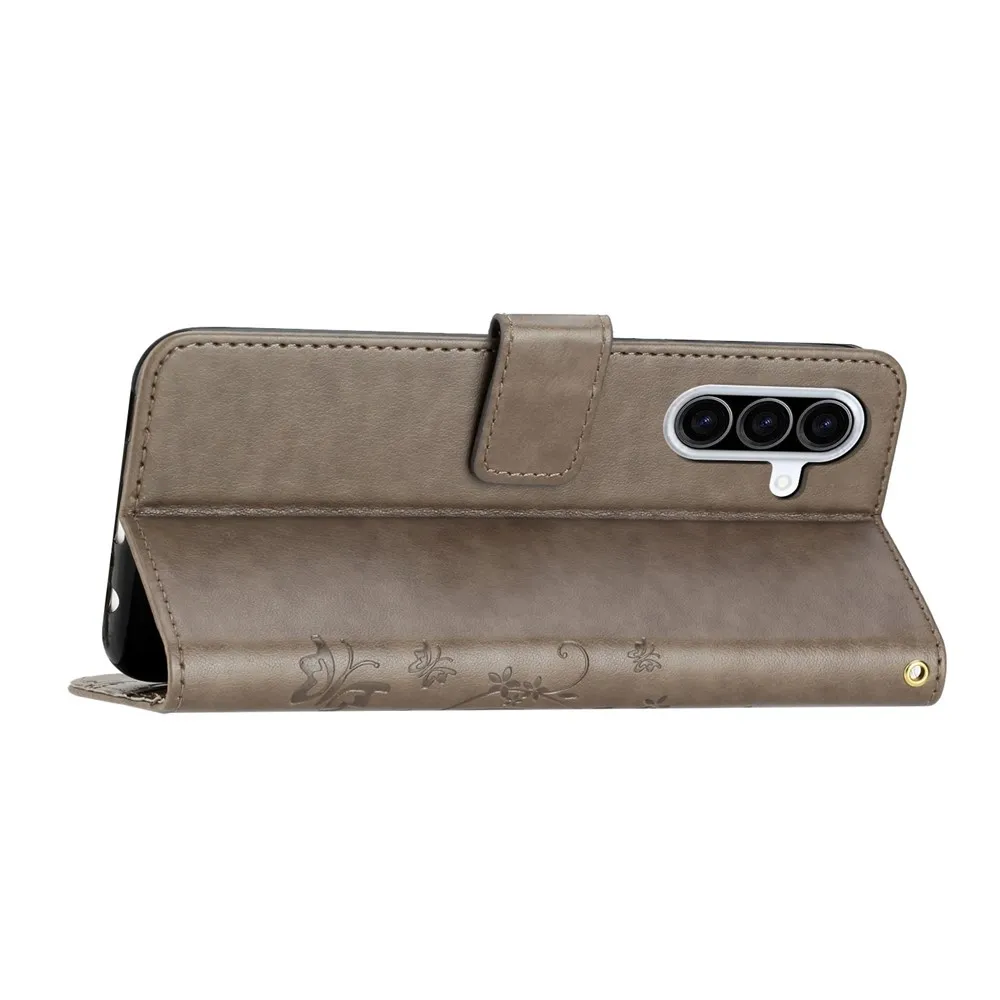 Szürke pénztárca tok Virágok Samsung Galaxy A57 5G számára