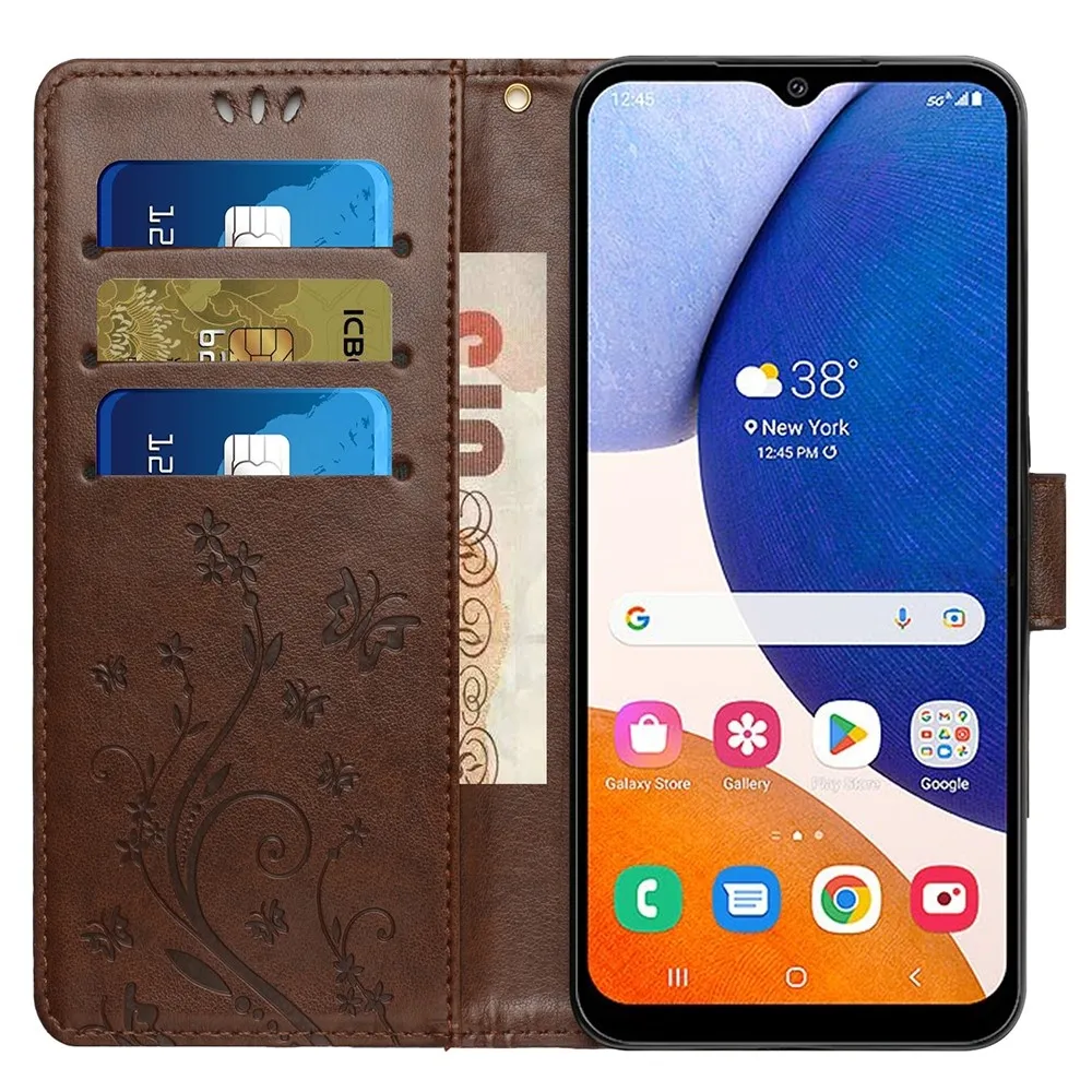Barna pénztárca tok Virágok Samsung Galaxy S23 FE számára