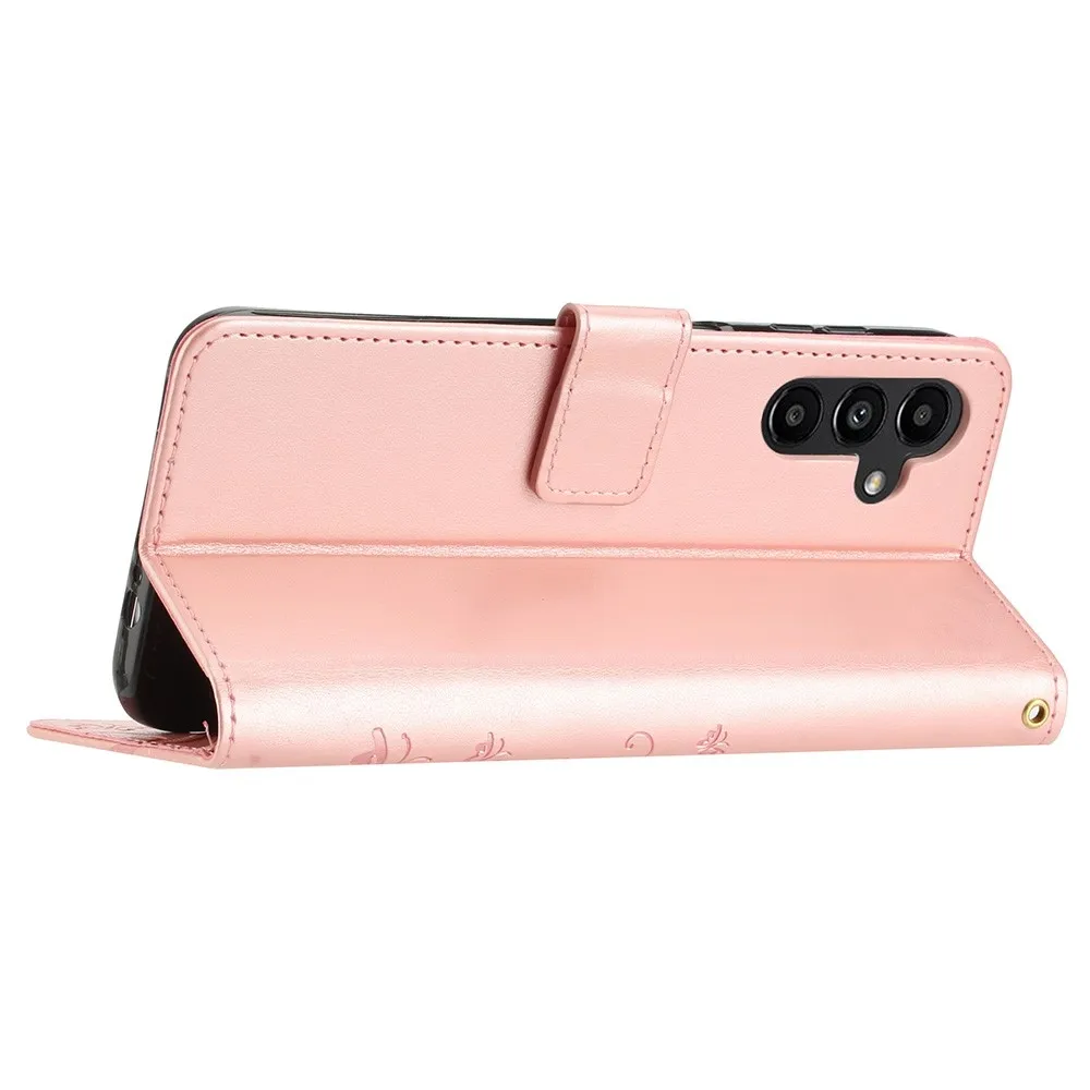 Rózsa arany pénztárca tok Virágok Samsung Galaxy S23 FE számára