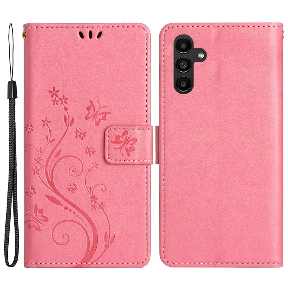 Rózsaszín pénztárca tok Virágok Samsung Galaxy S23 FE számára