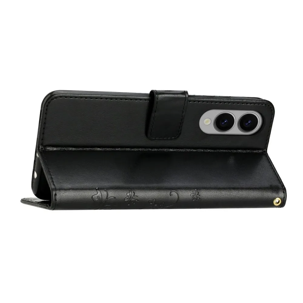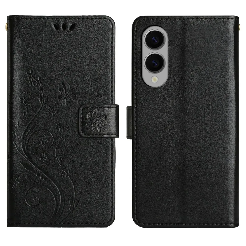 Fekete pénztárca tok Virágok Samsung Galaxy S25 Edge-hez