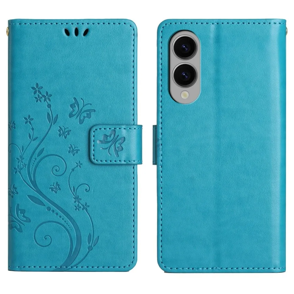 Kék pénztárca tok Virágok Samsung Galaxy S25 Edge számára