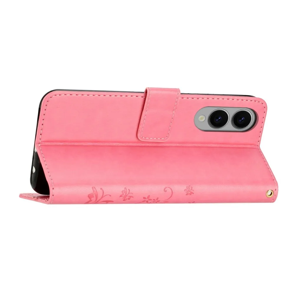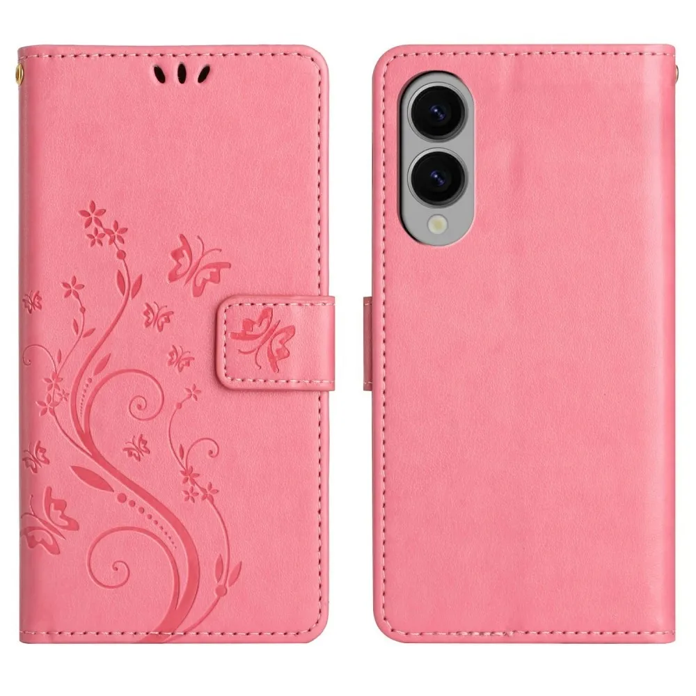 Rózsaszín pénztárca tok Virágok Samsung Galaxy S25 Edge számára