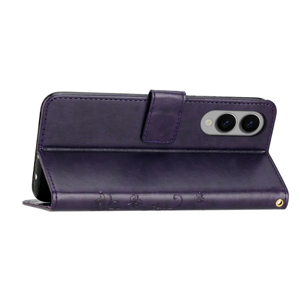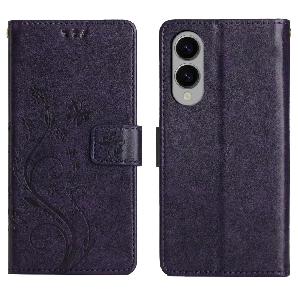 Sötét lila virágok pénztárca tok Samsung Galaxy S25 Edge számára
