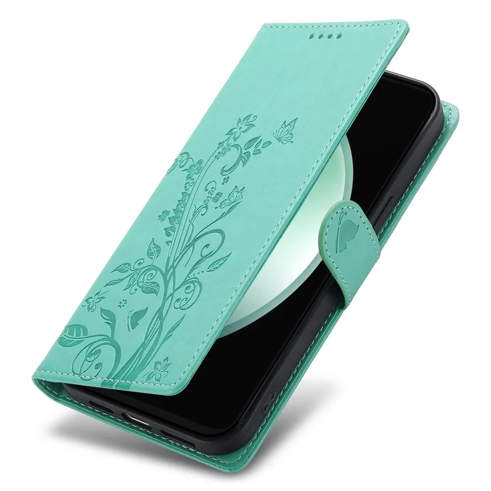 Virágok könyv tok Samsung Galaxy S25 FE készülékhez - kékeszöld színű
