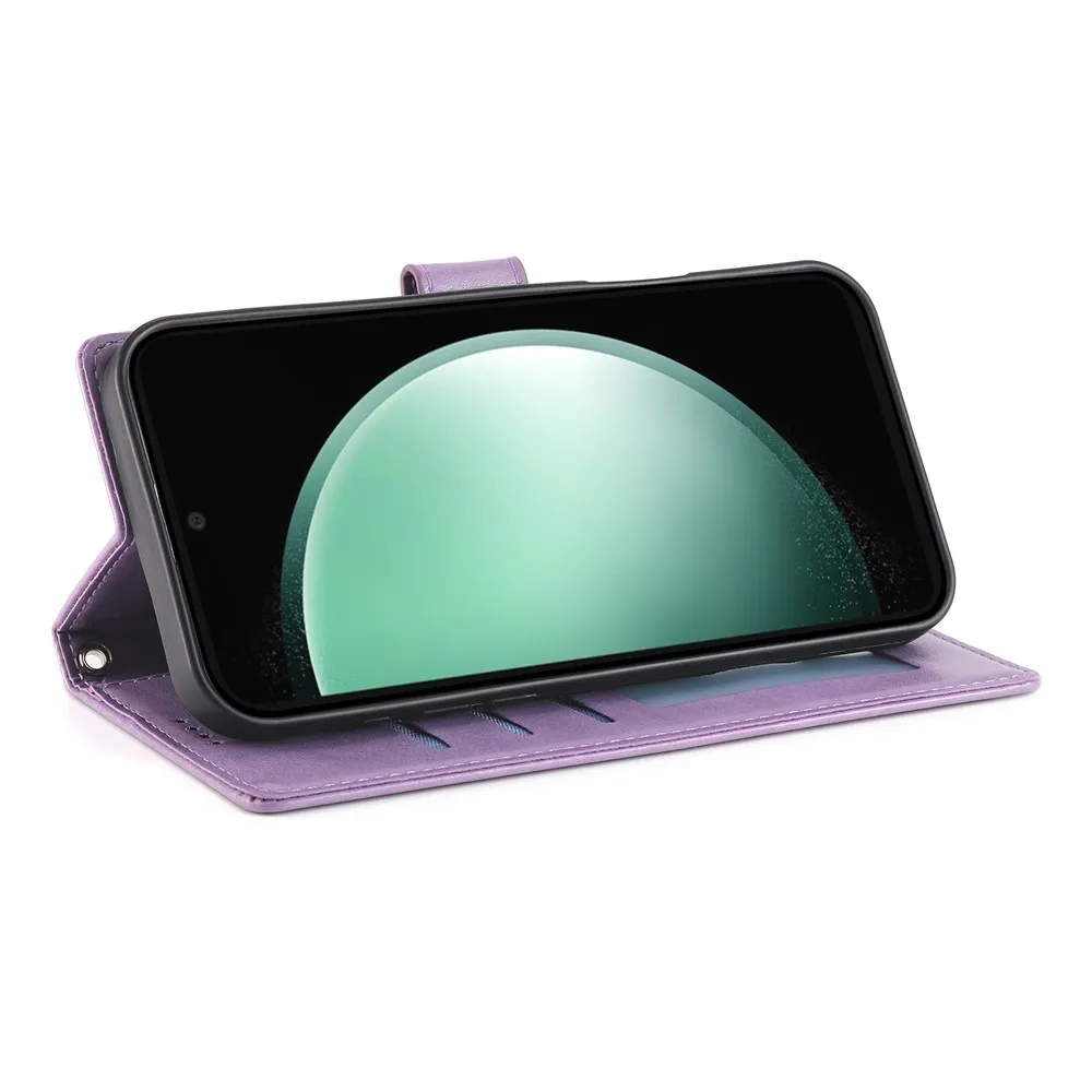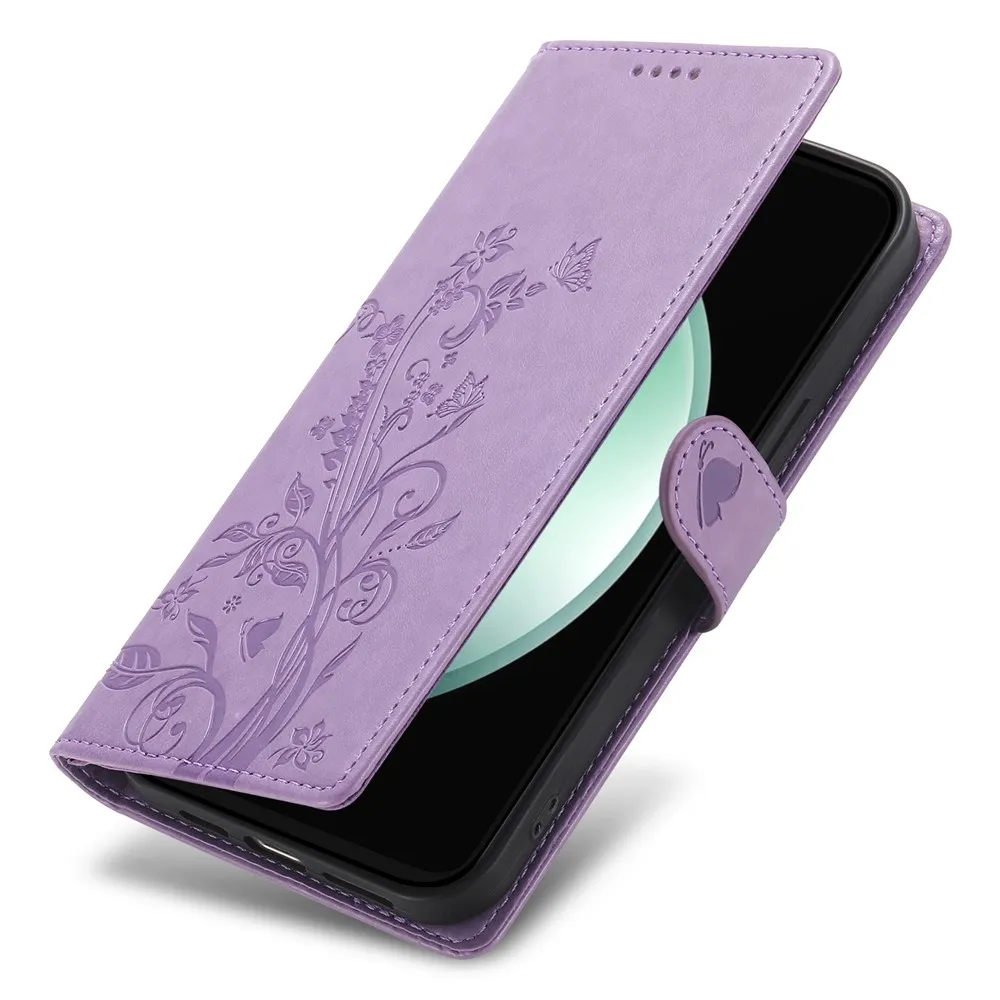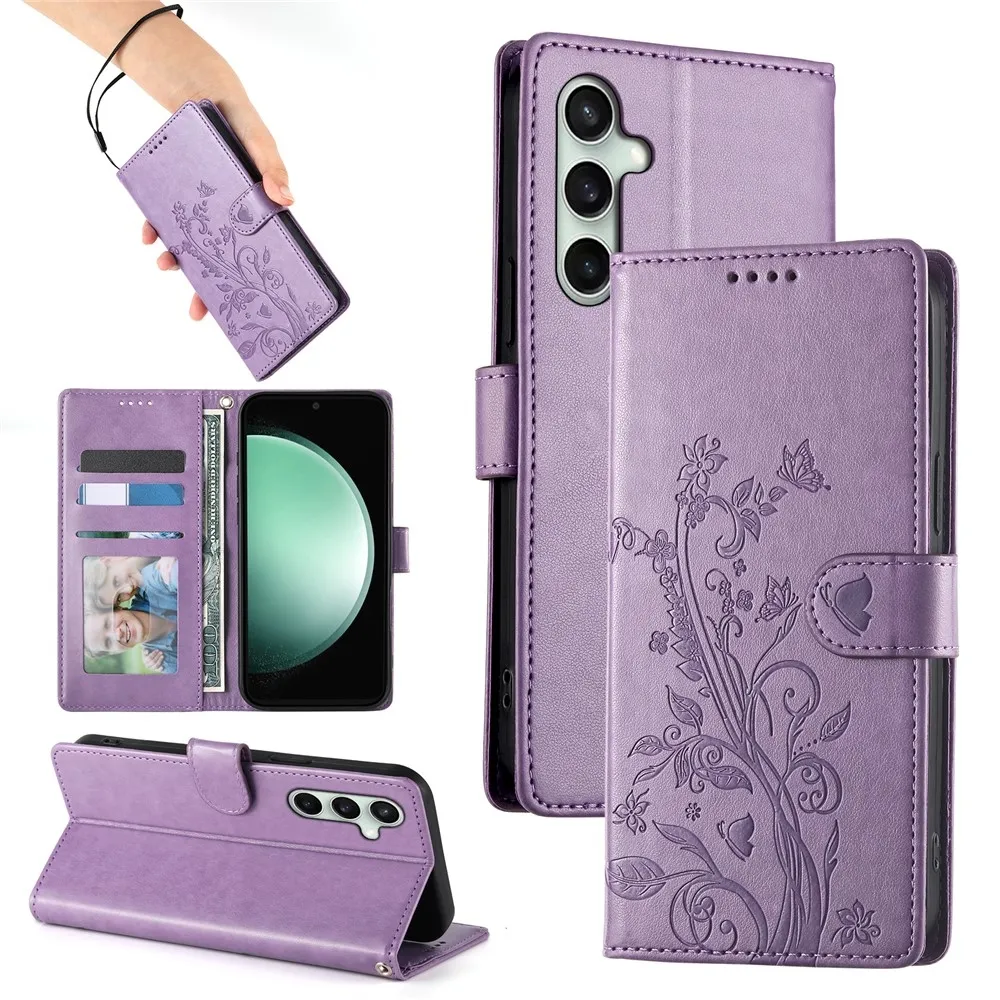 Lila pénztárca tok Virág Samsung Galaxy S25 FE készülékhez