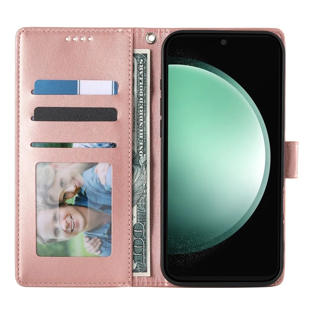 Rózsa arany pénztárca tok Virág Samsung Galaxy S25 FE számára