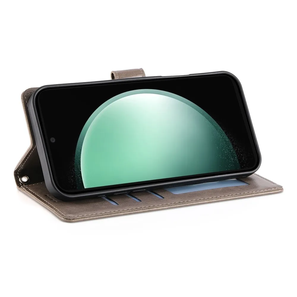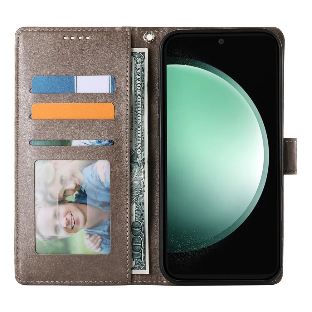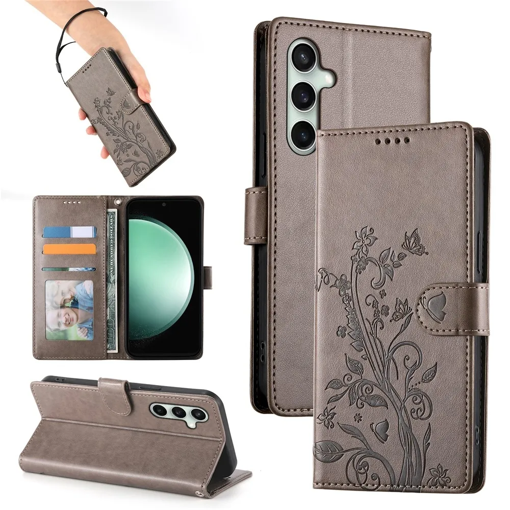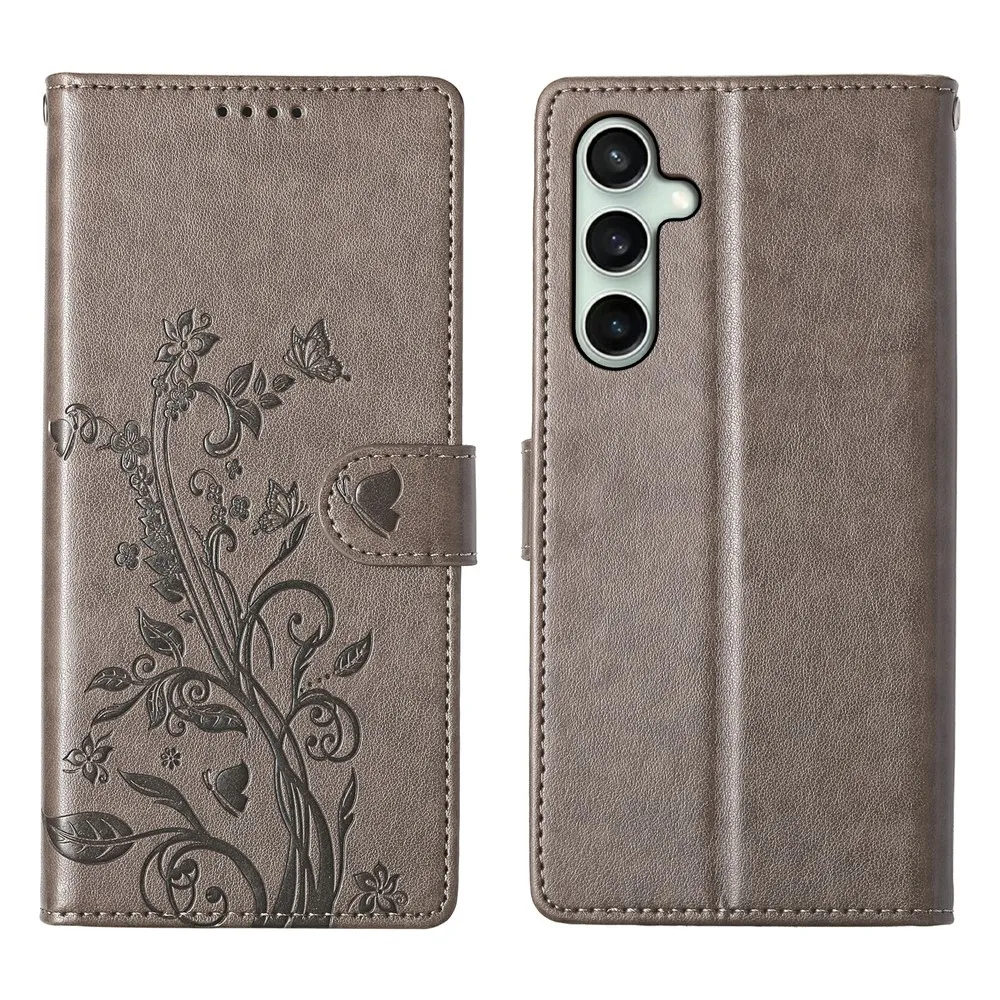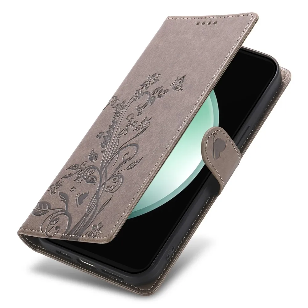 Szürke pénztárca tok Virág Samsung Galaxy S25 FE számára