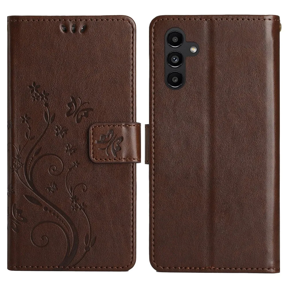 Barna pénztárca tok Virágok a Samsung Galaxy S25 számára