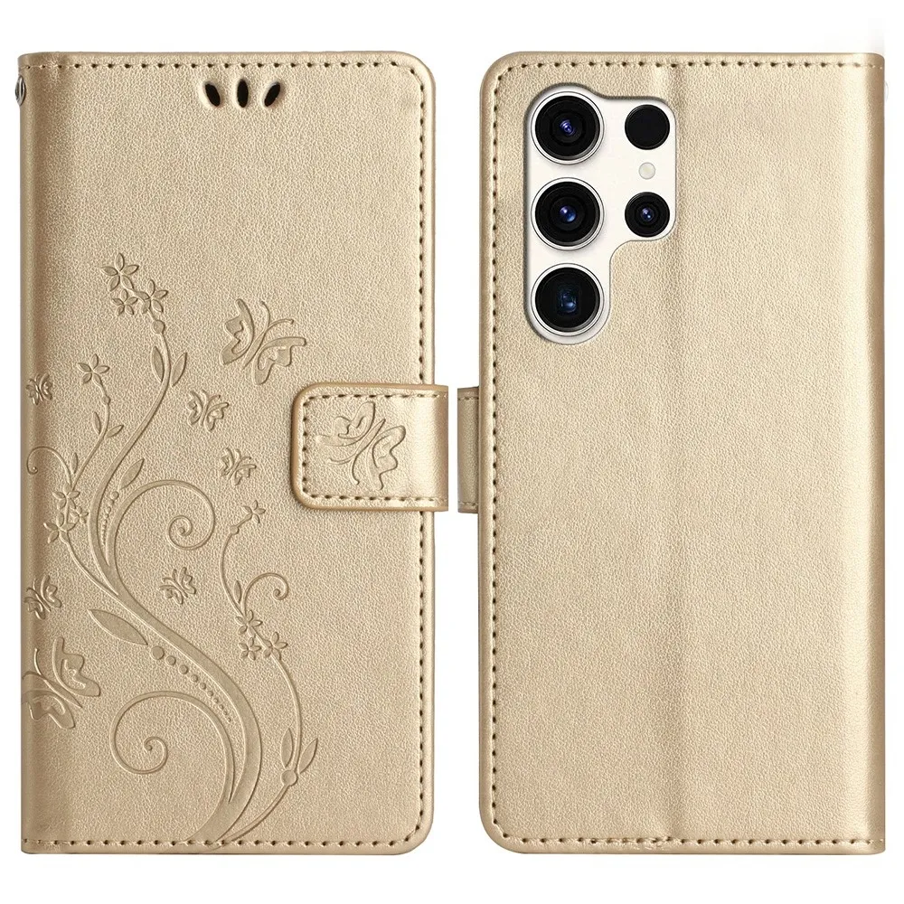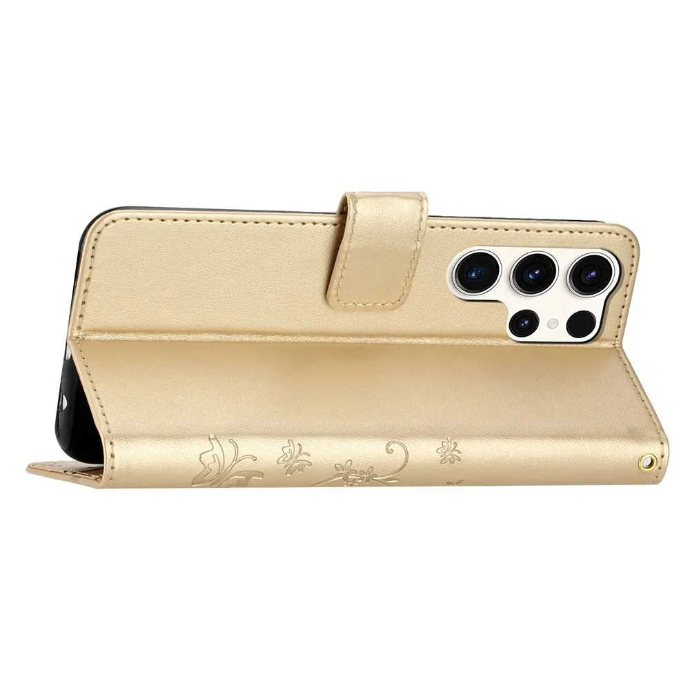 Arany pénztárca tok Virágok Samsung Galaxy S25 Ultra számára