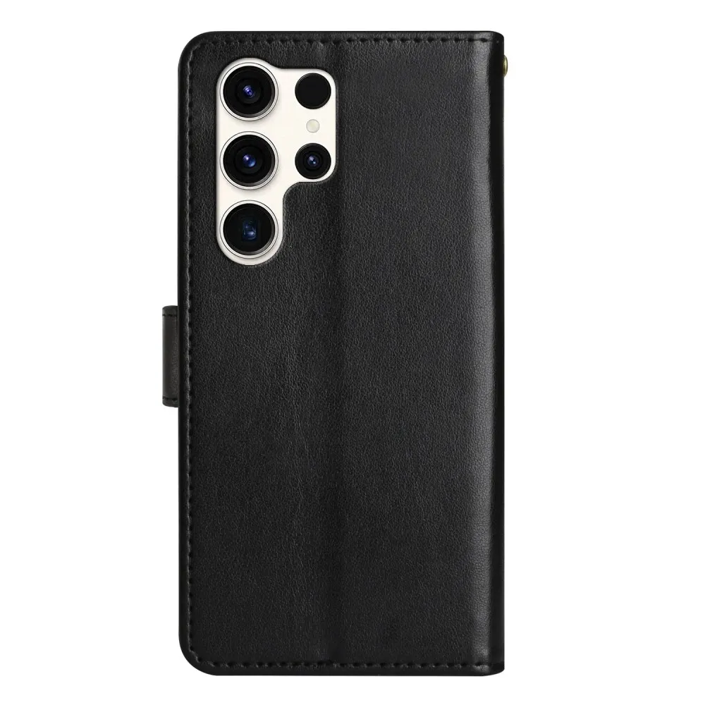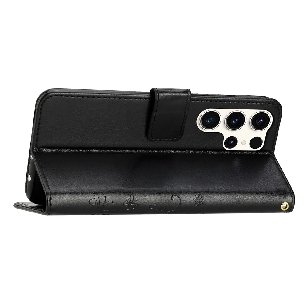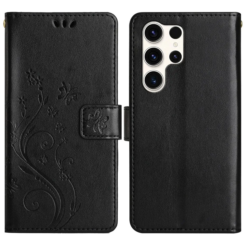 Fekete pénztárca tok Virágok a Samsung Galaxy S25 Ultra számára