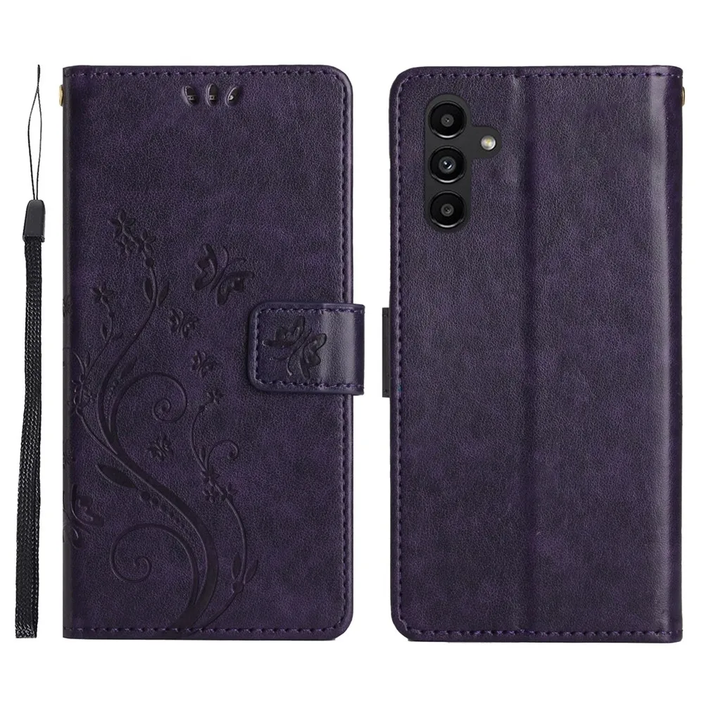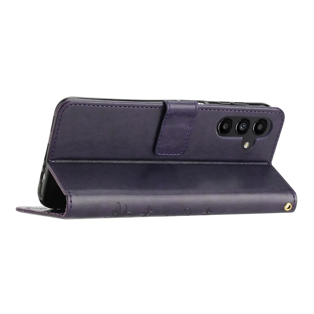 Sötét lila pénztárca tok Virágok Samsung Galaxy S26+-hoz