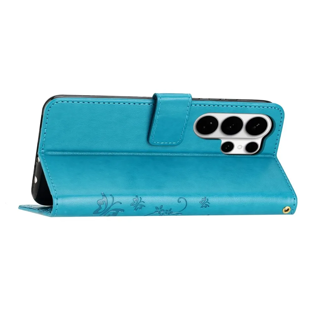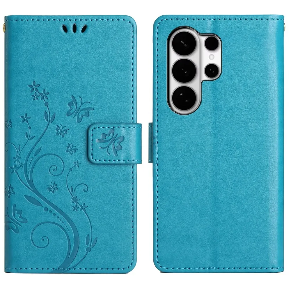 Kék pénztárca tok Virágok a Samsung Galaxy S26 Ultra számára