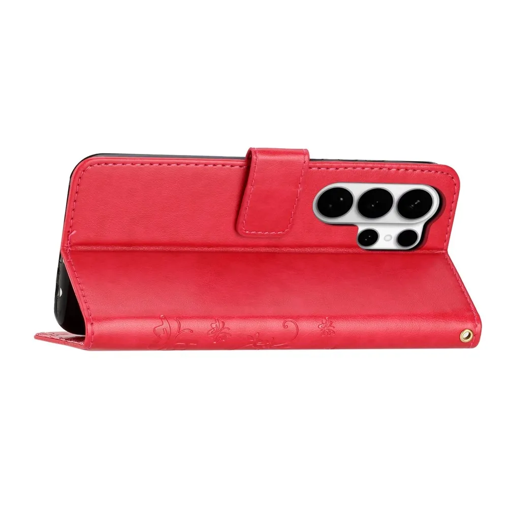 Piros pénztárca tok Virágok a Samsung Galaxy S26 Ultra számára
