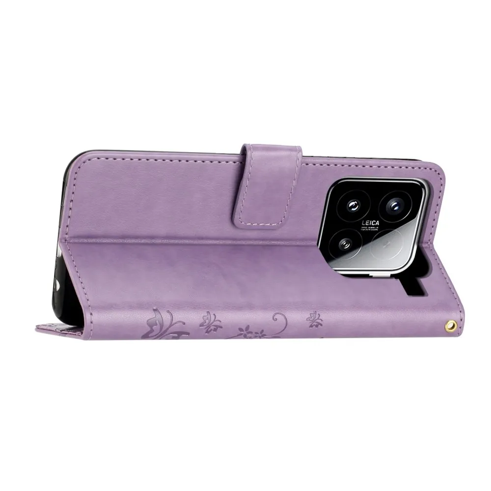 Világos lila pénztárca tok Virágok a Xiaomi 15 számára