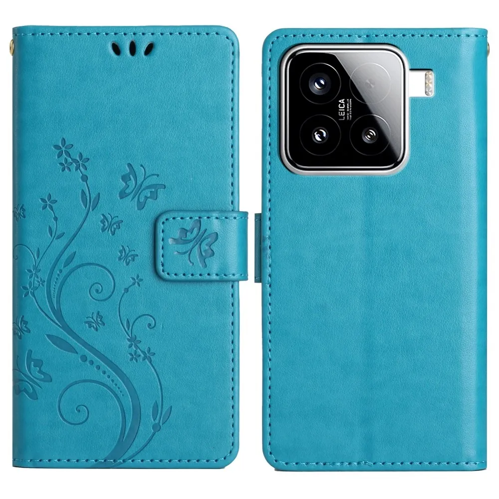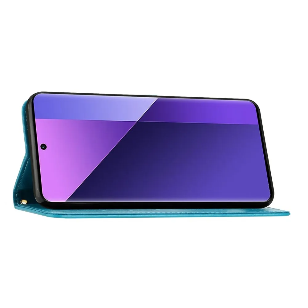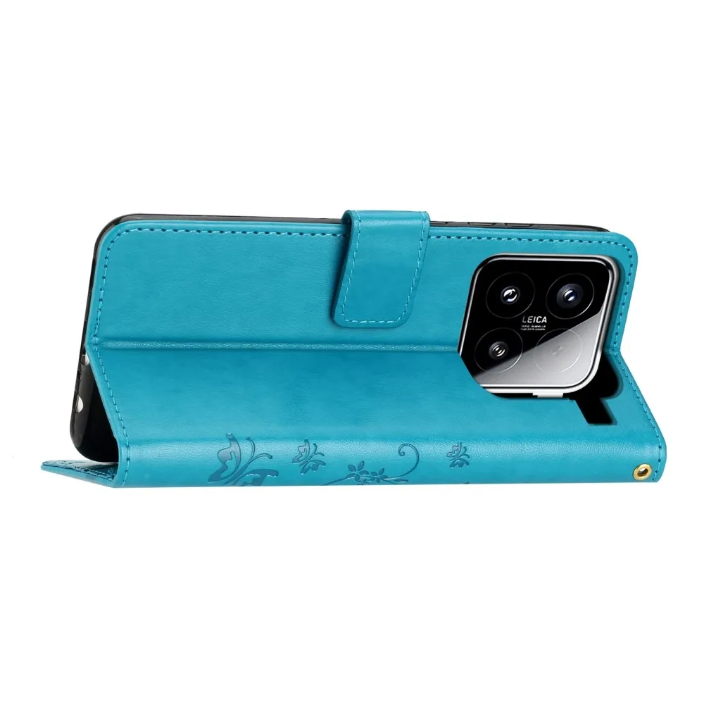 Kék pénztárca tok Virágok a Xiaomi 15 számára