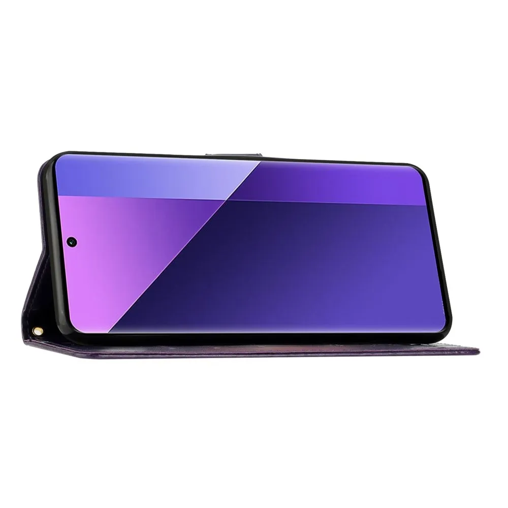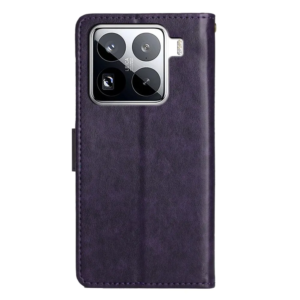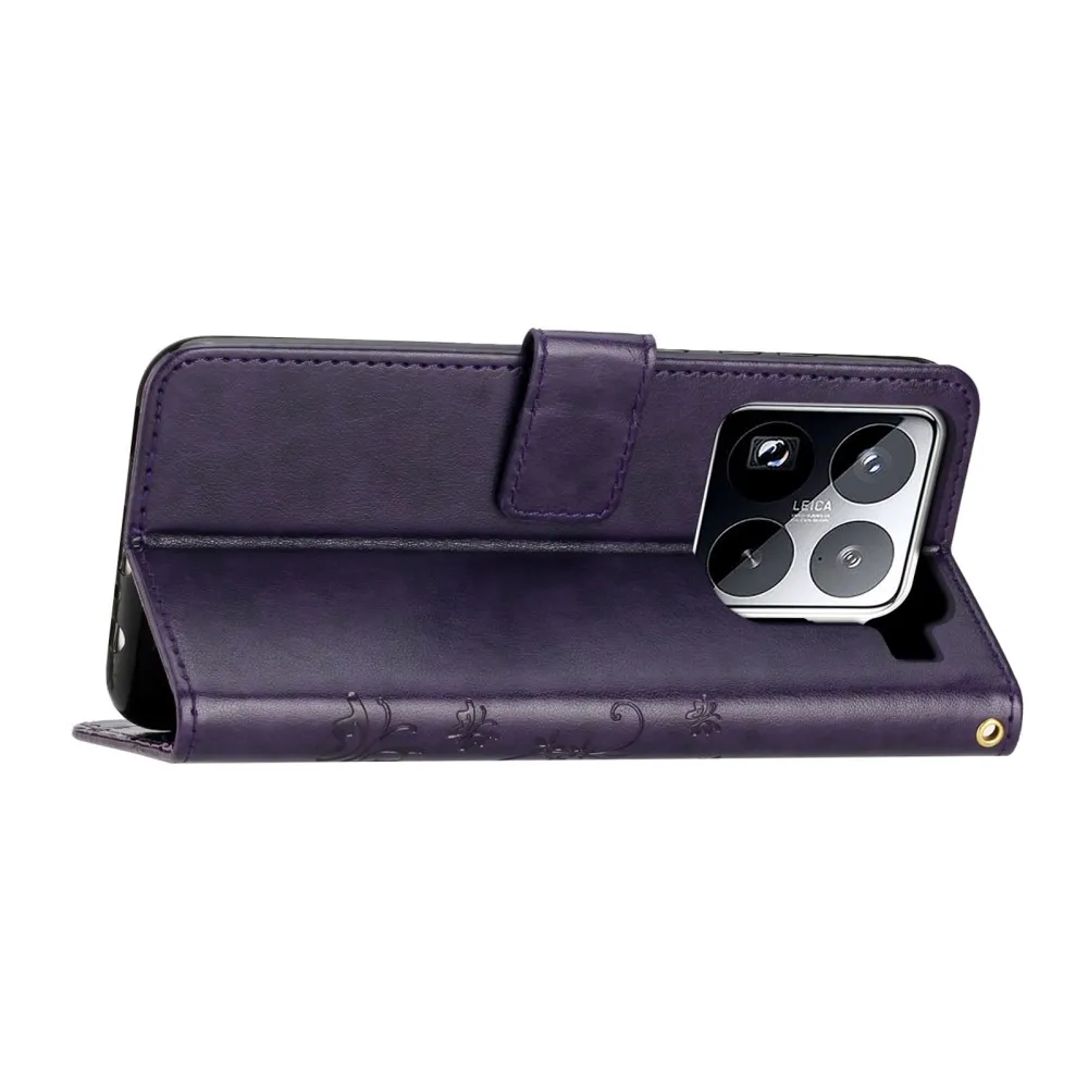 Sötét lila pénztárca tok Virágok Xiaomi 15 Pro számára