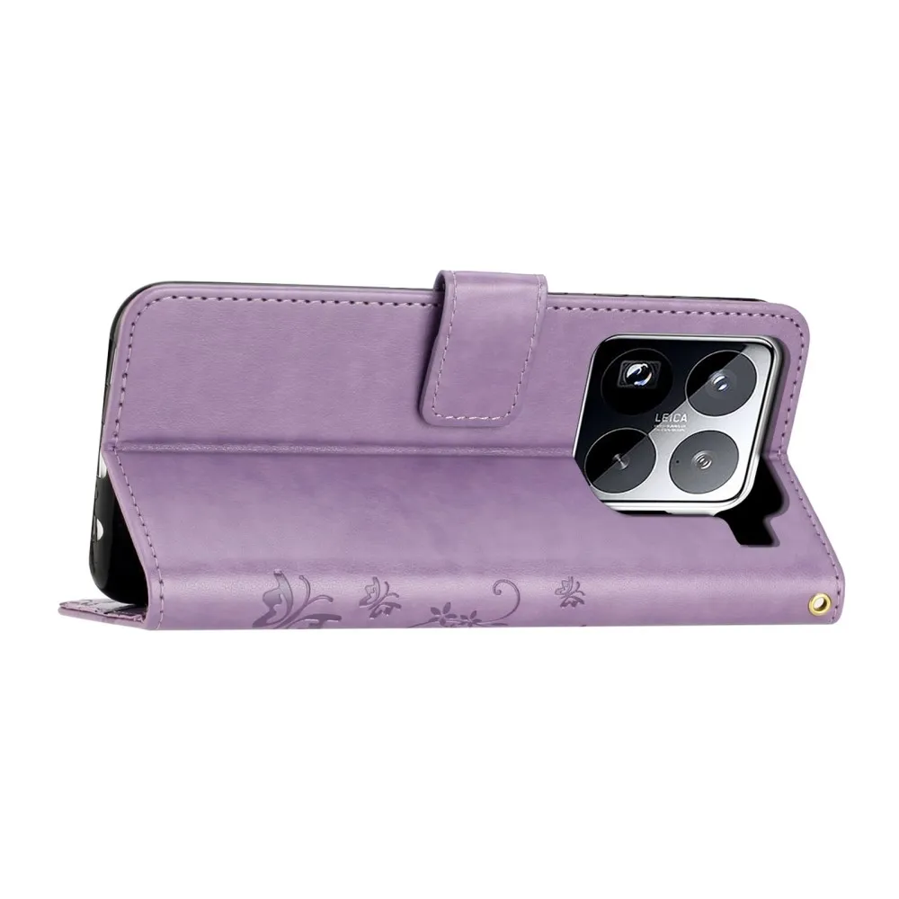 Világos lila pénztárca tok Virágok a Xiaomi 15 Pro számára
