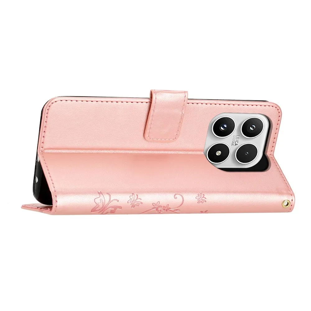Rózsaszín és arany pénztárca tok Virágok a Xiaomi 17 számára