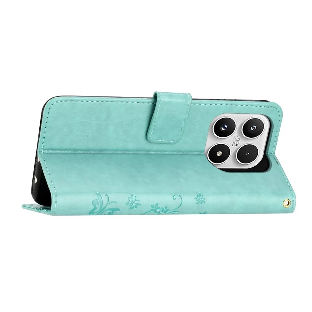 Kék-zöld pénztárca tok Virágok a Xiaomi 17 számára