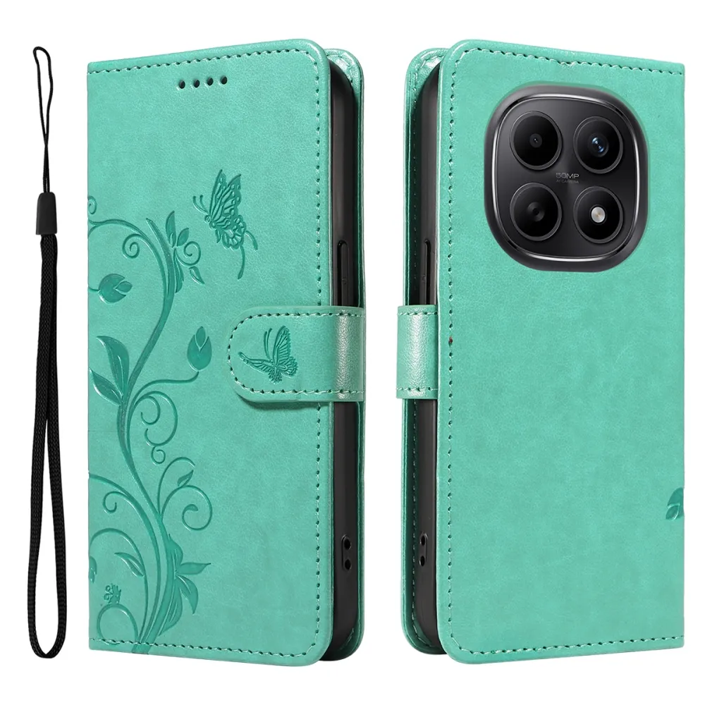 Virágok könyv tok Xiaomi Poco M8 5G/Redmi Note 15 5G/Note 15 4G - teal színben