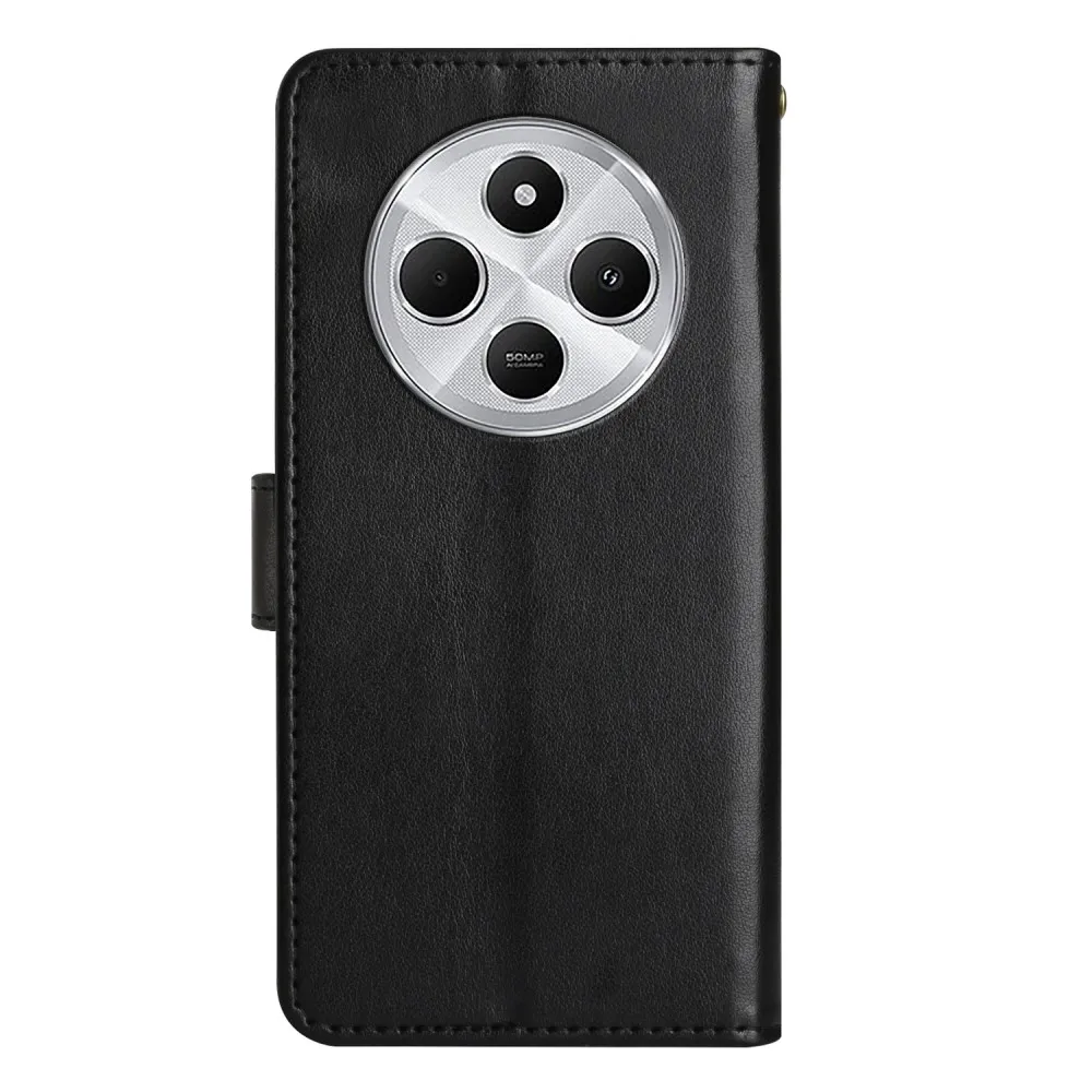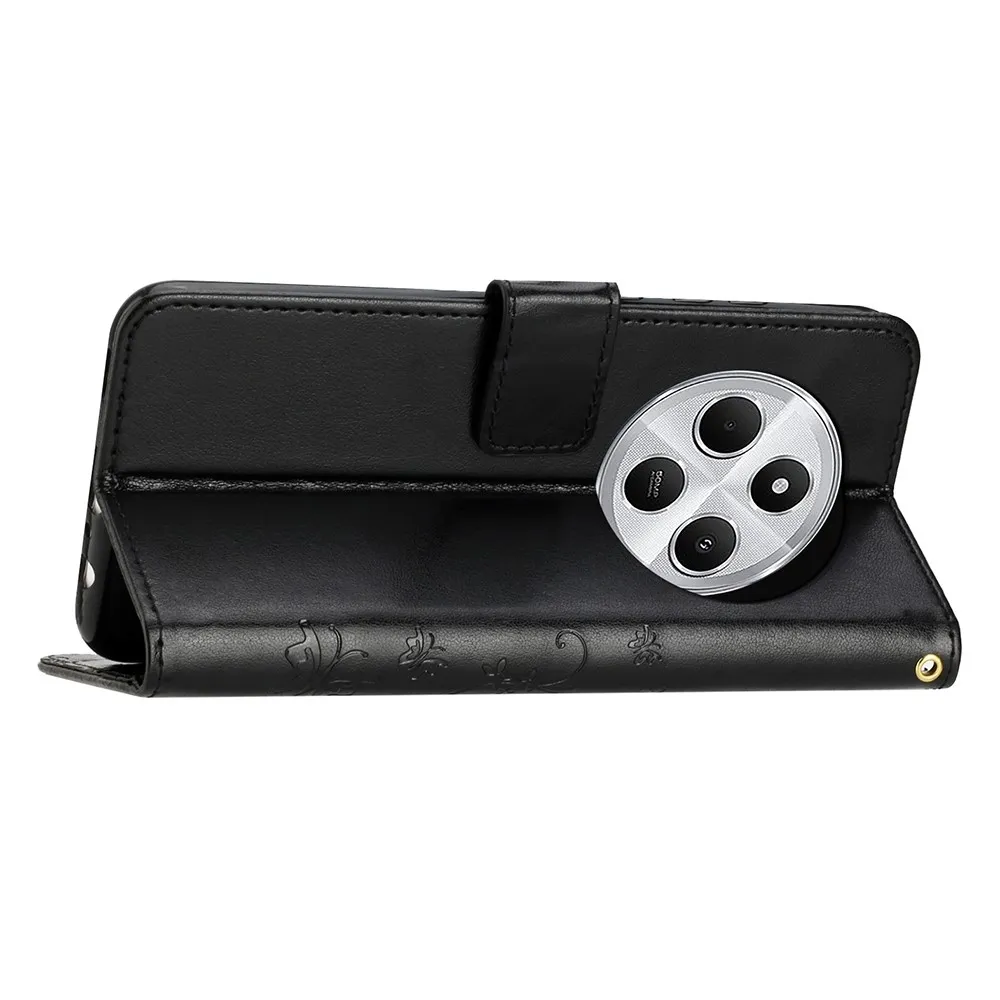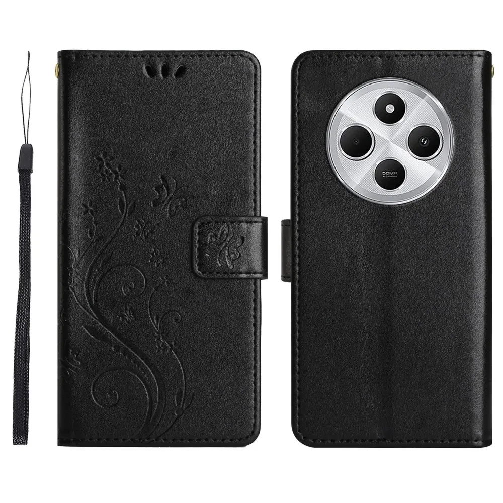Fekete pénztárca tok Virágok a Xiaomi Redmi 14C/Poco C75 számára