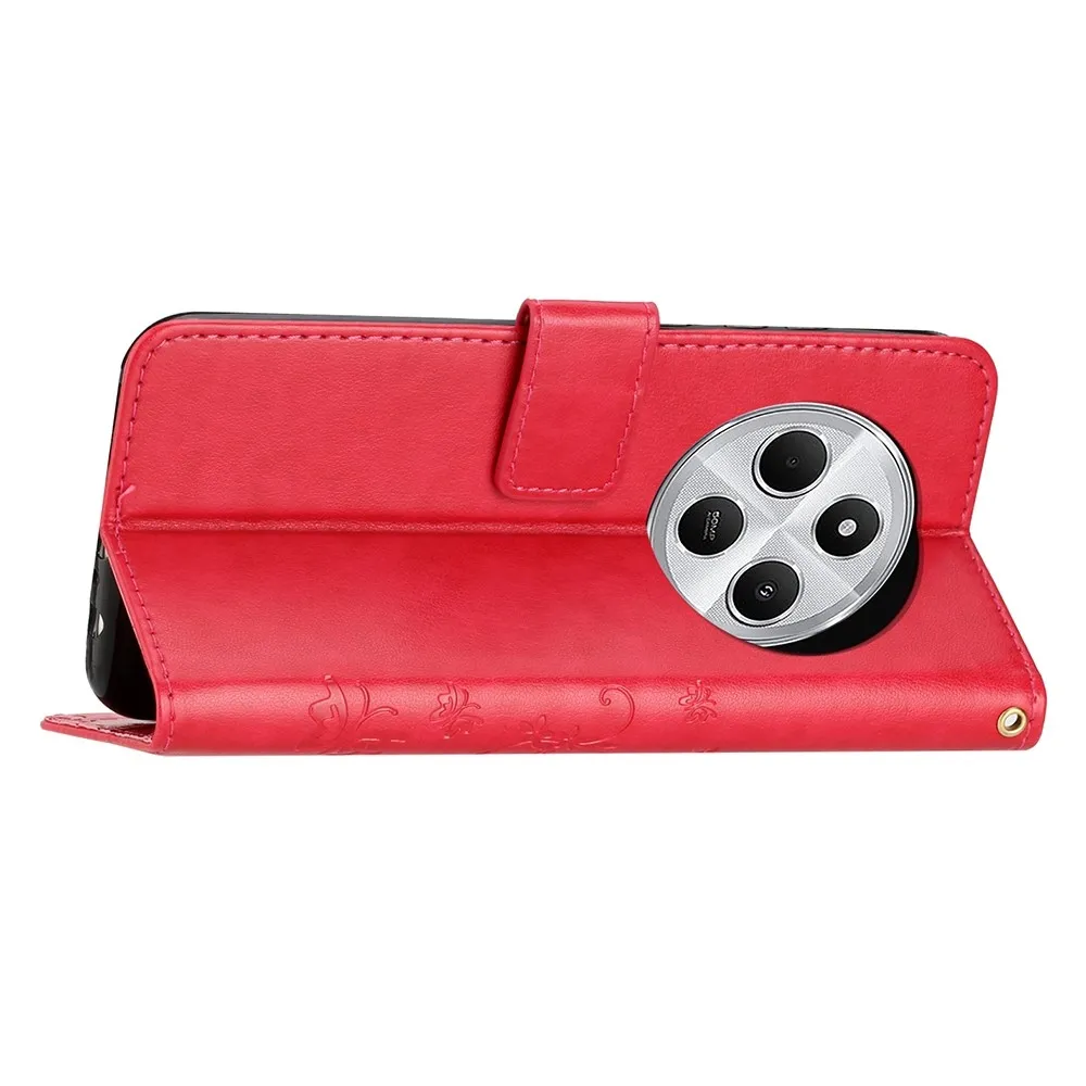 Piros pénztárca tok Virágok a Xiaomi Redmi 14C/Poco C75 számára