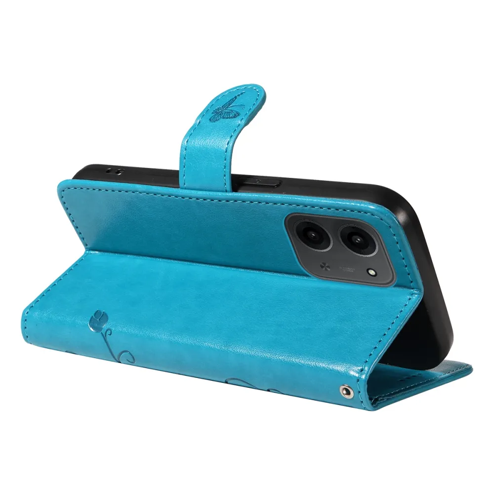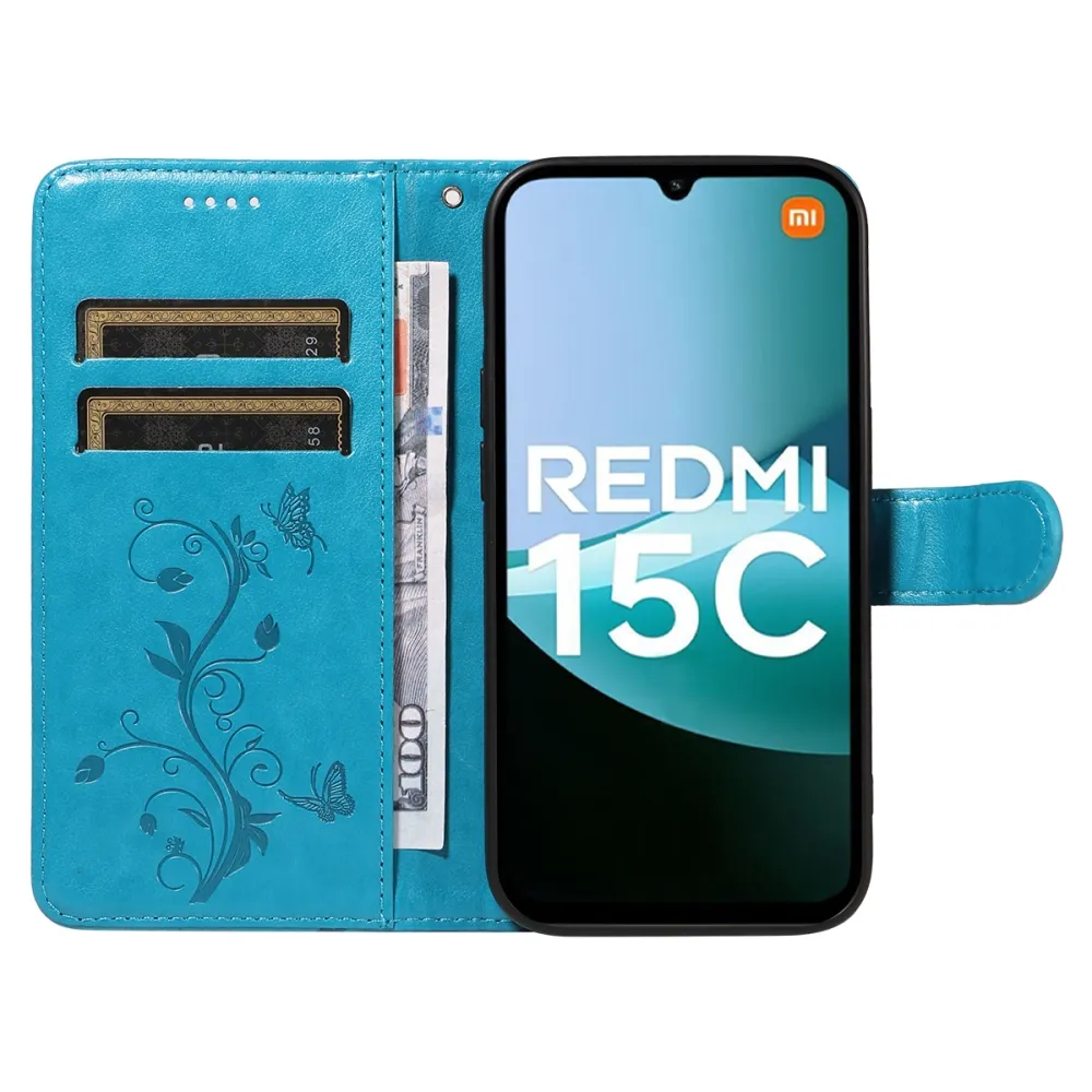 Kék pénztárca tok Virágok a Xiaomi Redmi 15C 4G/5G (173mm) számára
