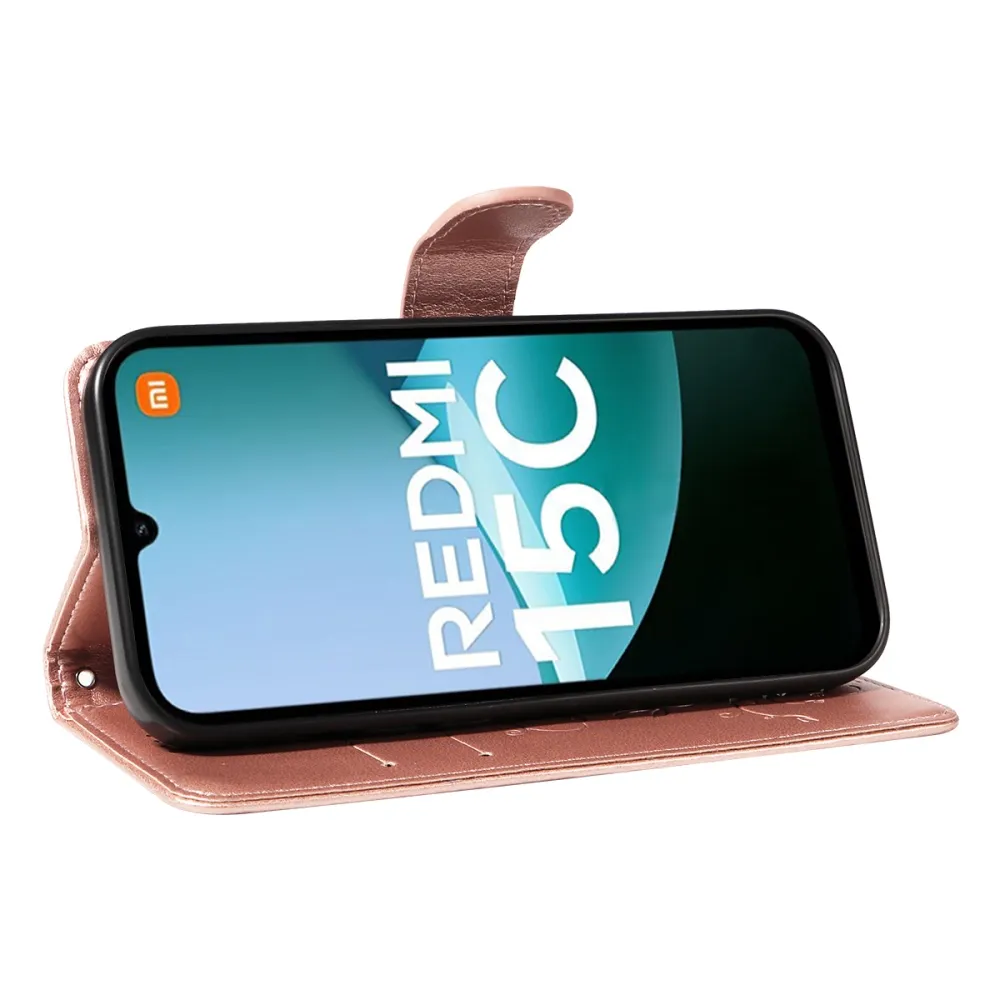 Rózsa arany pénztárca tok Virágok a Xiaomi Redmi 15C 4G/5G (173mm) számára