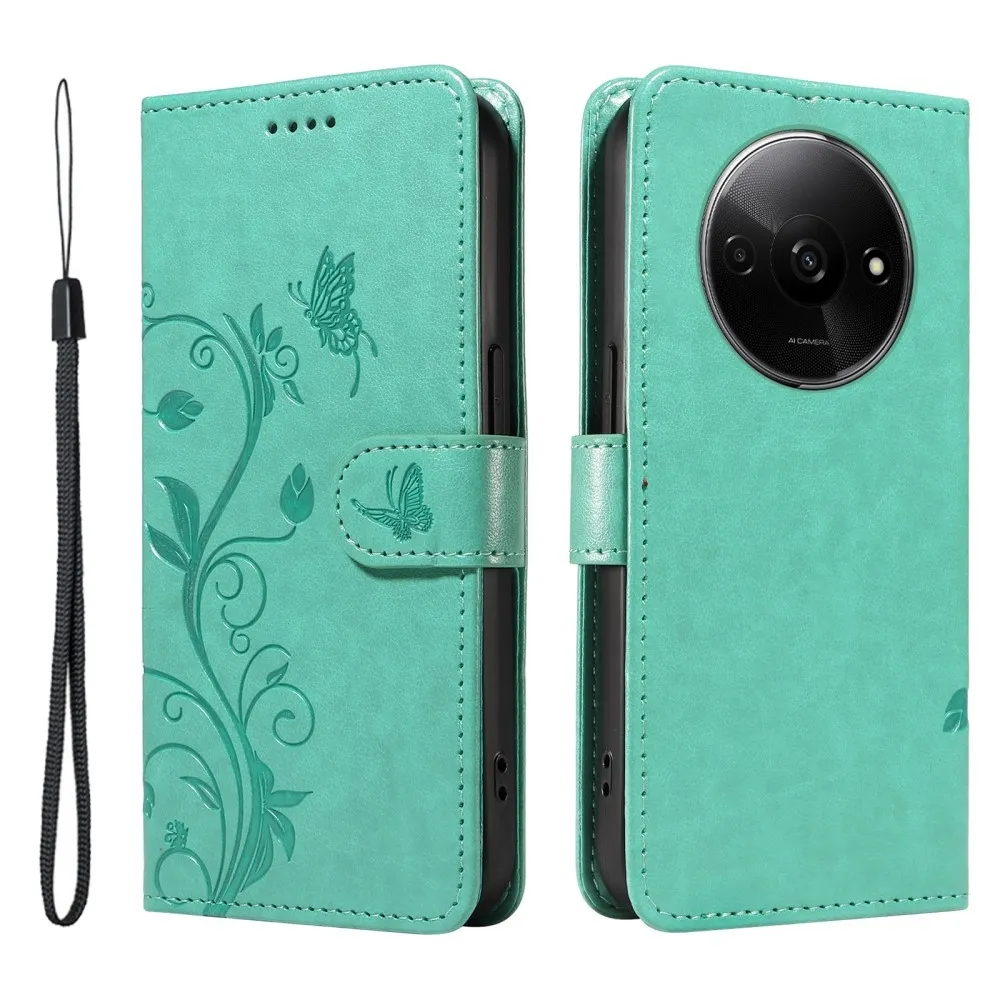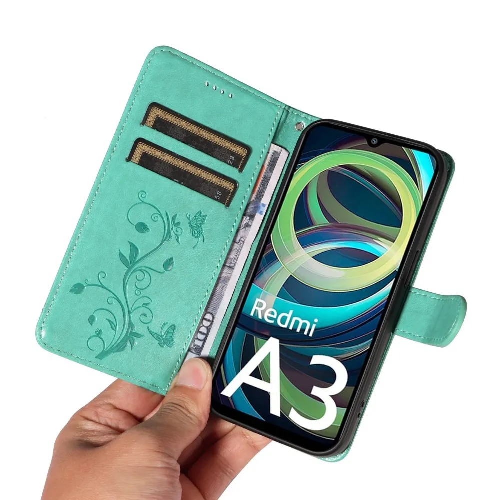 Kék-zöld pénztárca tok Virágok a Xiaomi Redmi A3 számára