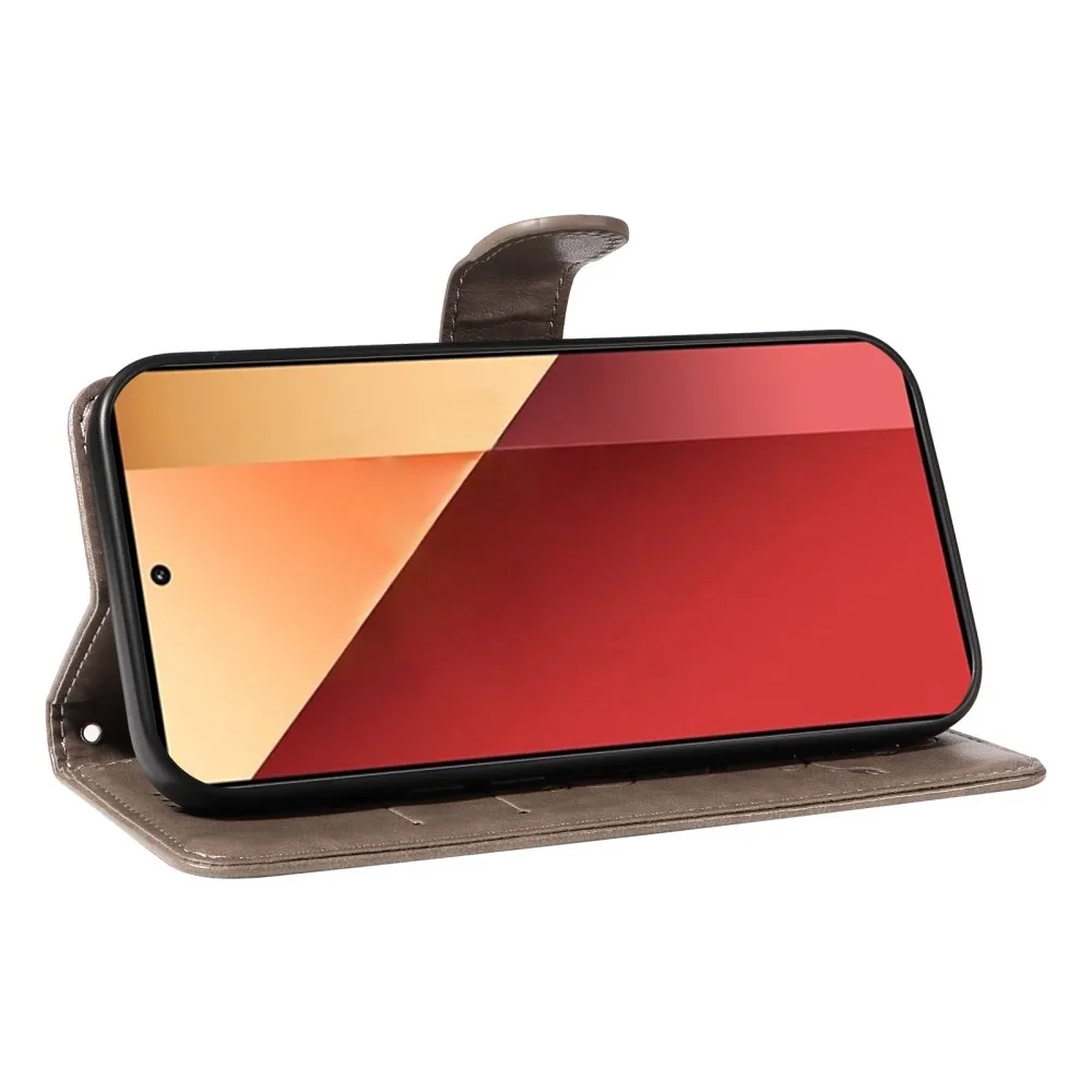 Szürke pénztárca tok Virágok a Xiaomi Redmi Note 13 Pro 4G/Poco M6 Pro számára